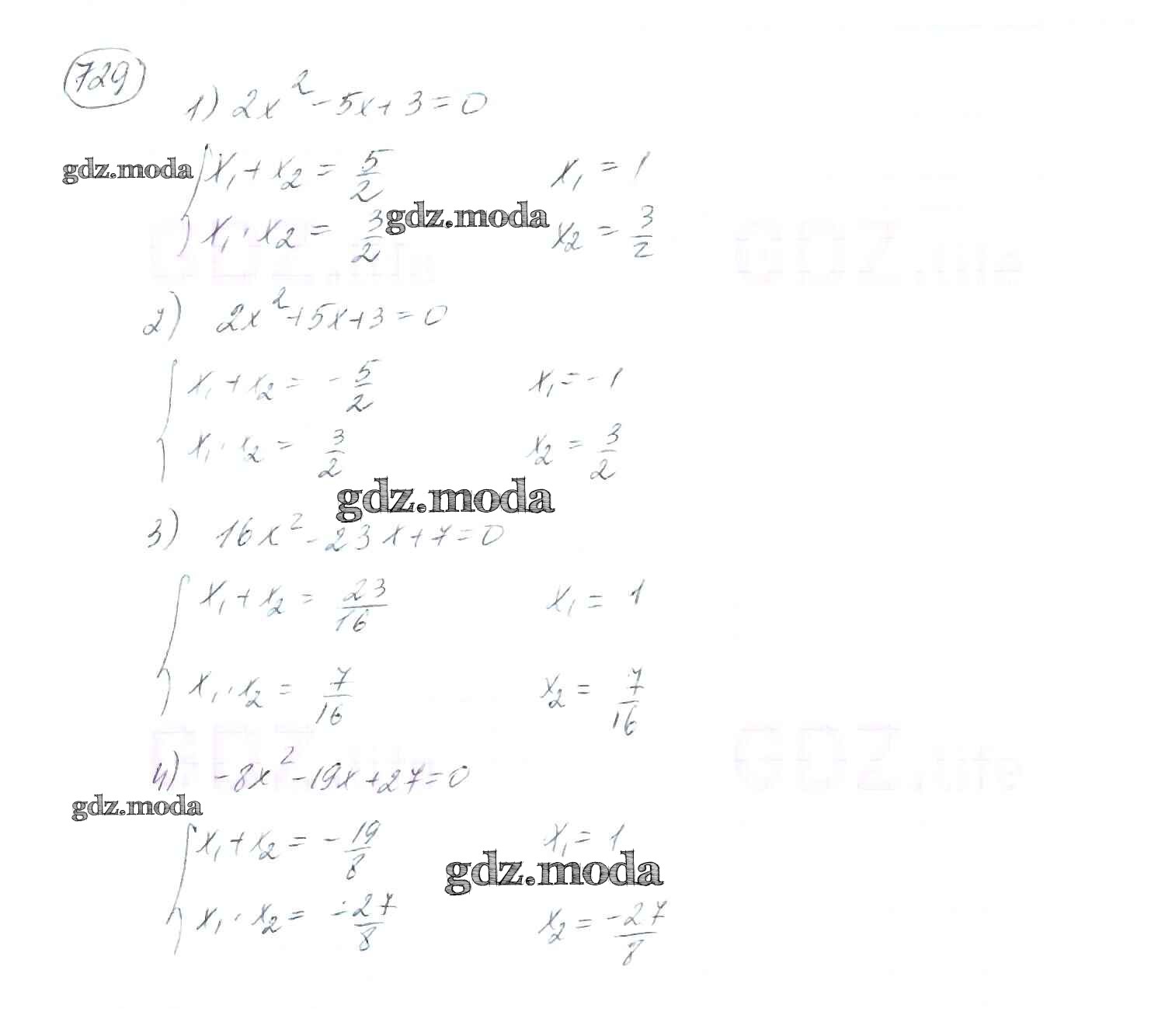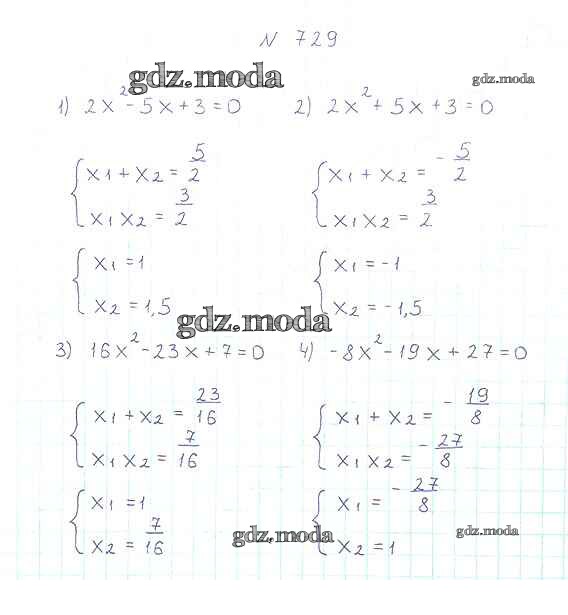 ОТВЕТ на задание № 729 Учебник по Алгебре 8 класс Мерзляк Алгоритм успеха