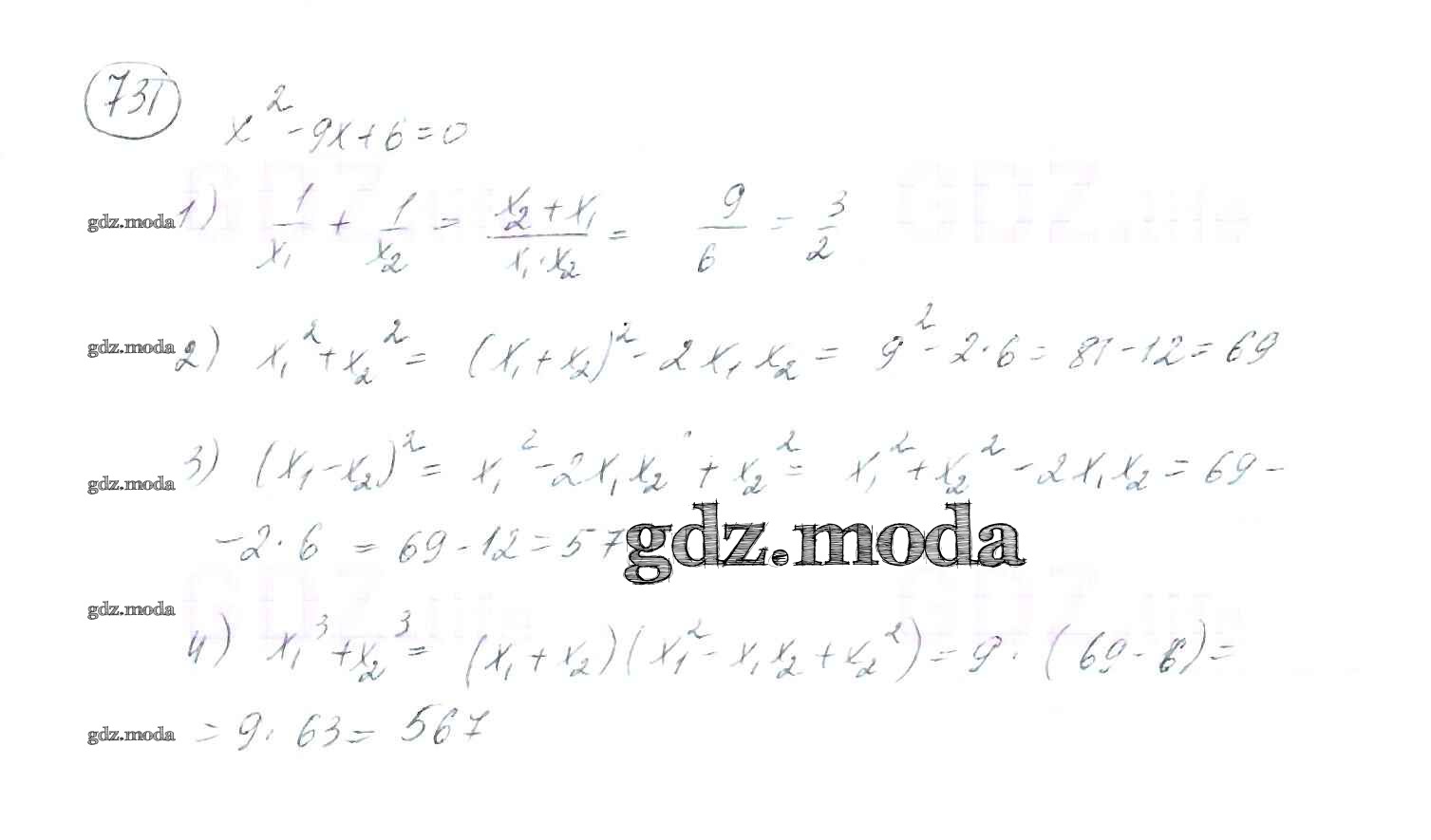 ОТВЕТ на задание № 731 Учебник по Алгебре 8 класс Мерзляк Алгоритм успеха