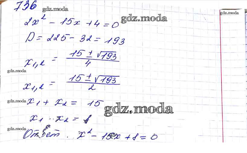 ОТВЕТ на задание № 736 Учебник по Алгебре 8 класс Мерзляк Алгоритм успеха