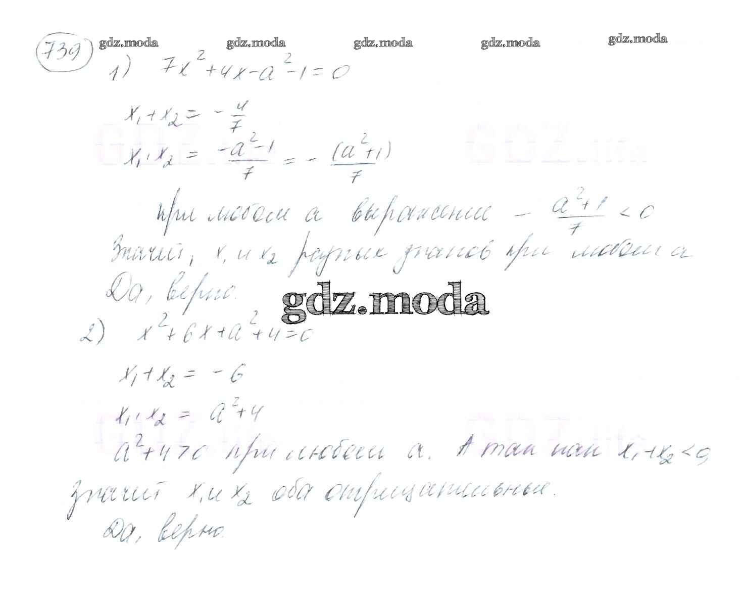 ОТВЕТ на задание № 739 Учебник по Алгебре 8 класс Мерзляк Алгоритм успеха