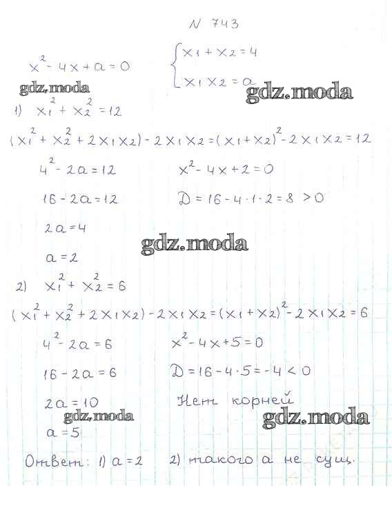 ОТВЕТ на задание № 743 Учебник по Алгебре 8 класс Мерзляк Алгоритм успеха