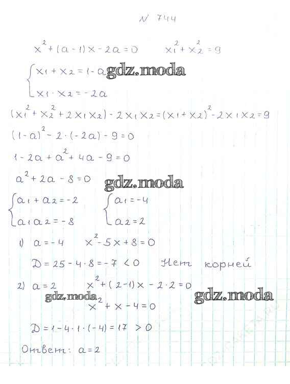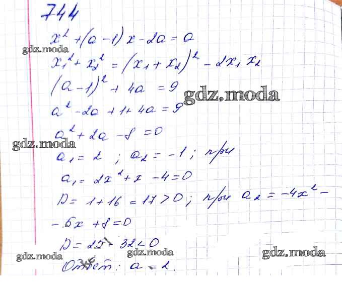 ОТВЕТ на задание № 744 Учебник по Алгебре 8 класс Мерзляк Алгоритм успеха