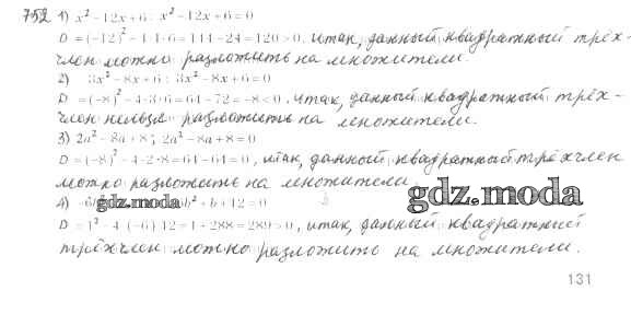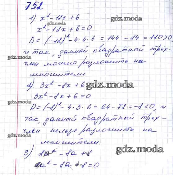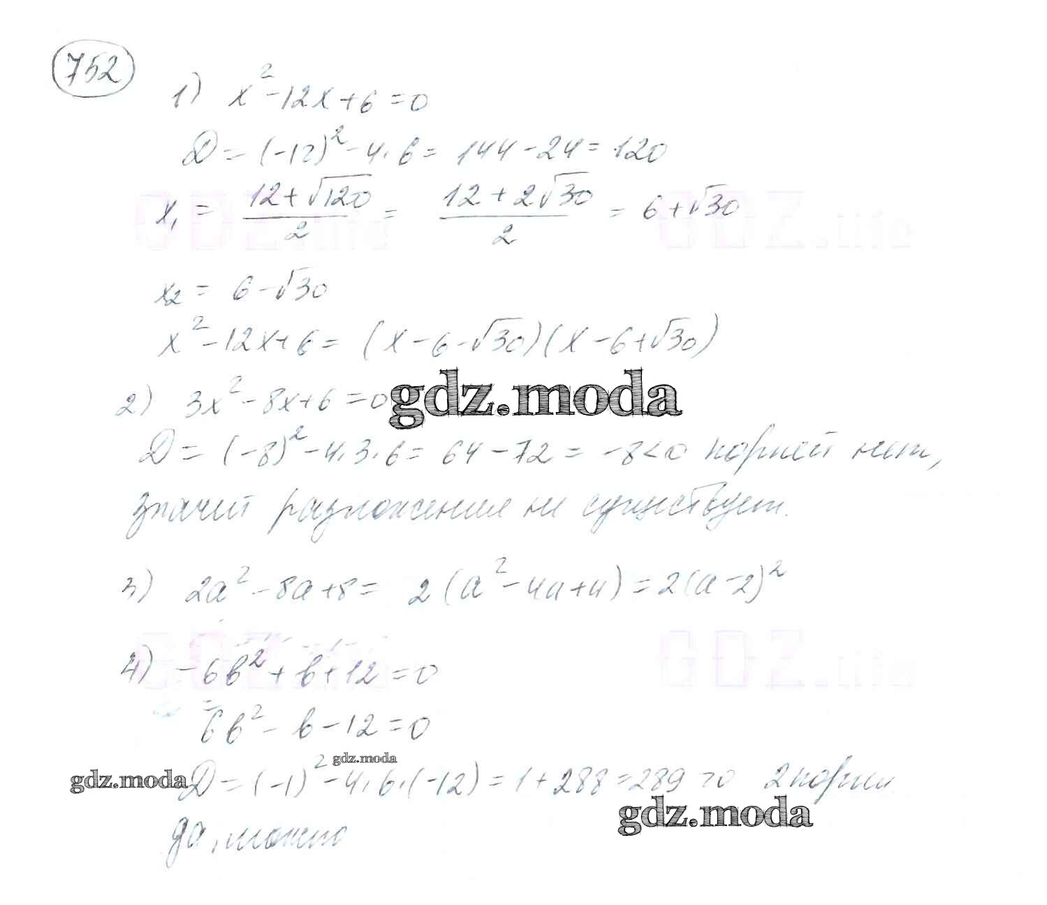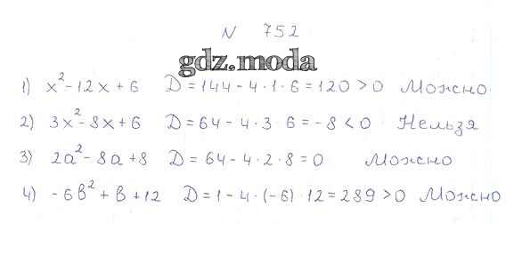 ОТВЕТ на задание № 752 Учебник по Алгебре 8 класс Мерзляк Алгоритм успеха