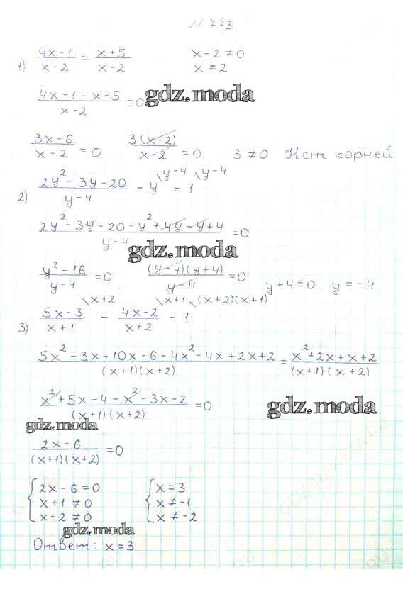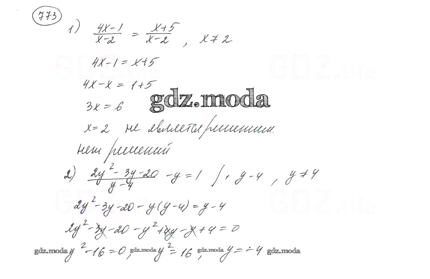 ОТВЕТ на задание № 773 Учебник по Алгебре 8 класс Мерзляк Алгоритм успеха