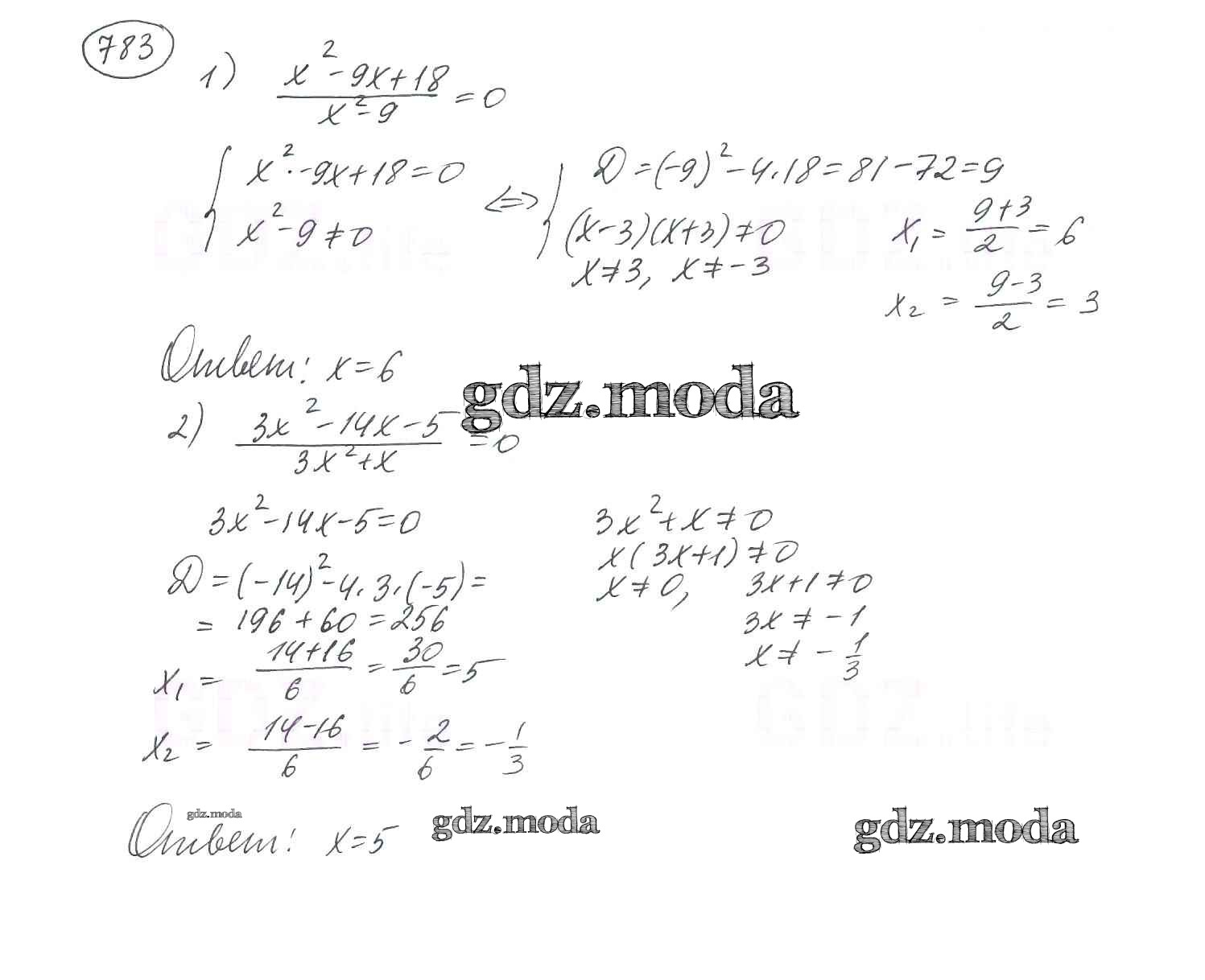 ОТВЕТ на задание № 783 Учебник по Алгебре 8 класс Мерзляк Алгоритм успеха