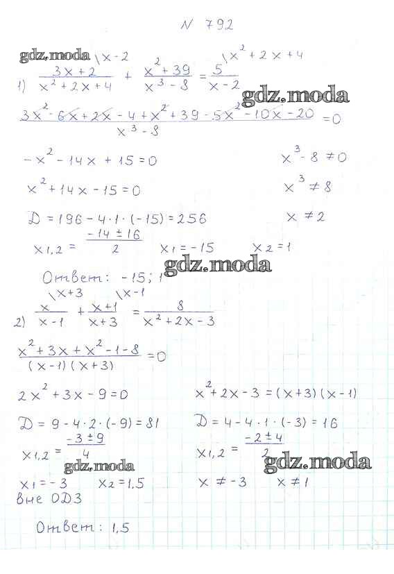 ОТВЕТ на задание № 792 Учебник по Алгебре 8 класс Мерзляк Алгоритм успеха