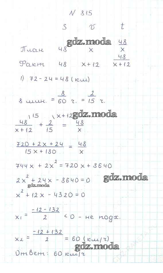 ОТВЕТ на задание № 815 Учебник по Алгебре 8 класс Мерзляк Алгоритм успеха
