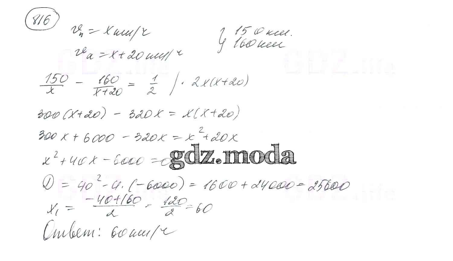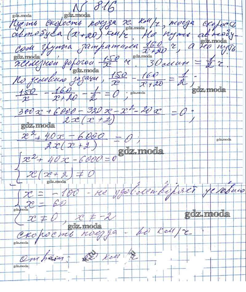 ОТВЕТ на задание № 816 Учебник по Алгебре 8 класс Мерзляк Алгоритм успеха