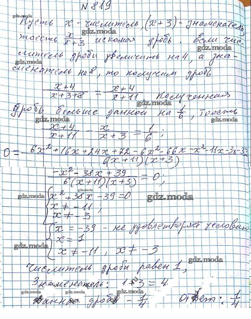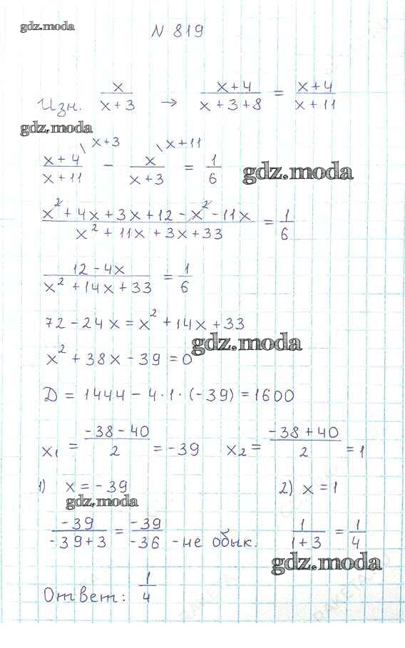 ОТВЕТ на задание № 819 Учебник по Алгебре 8 класс Мерзляк Алгоритм успеха
