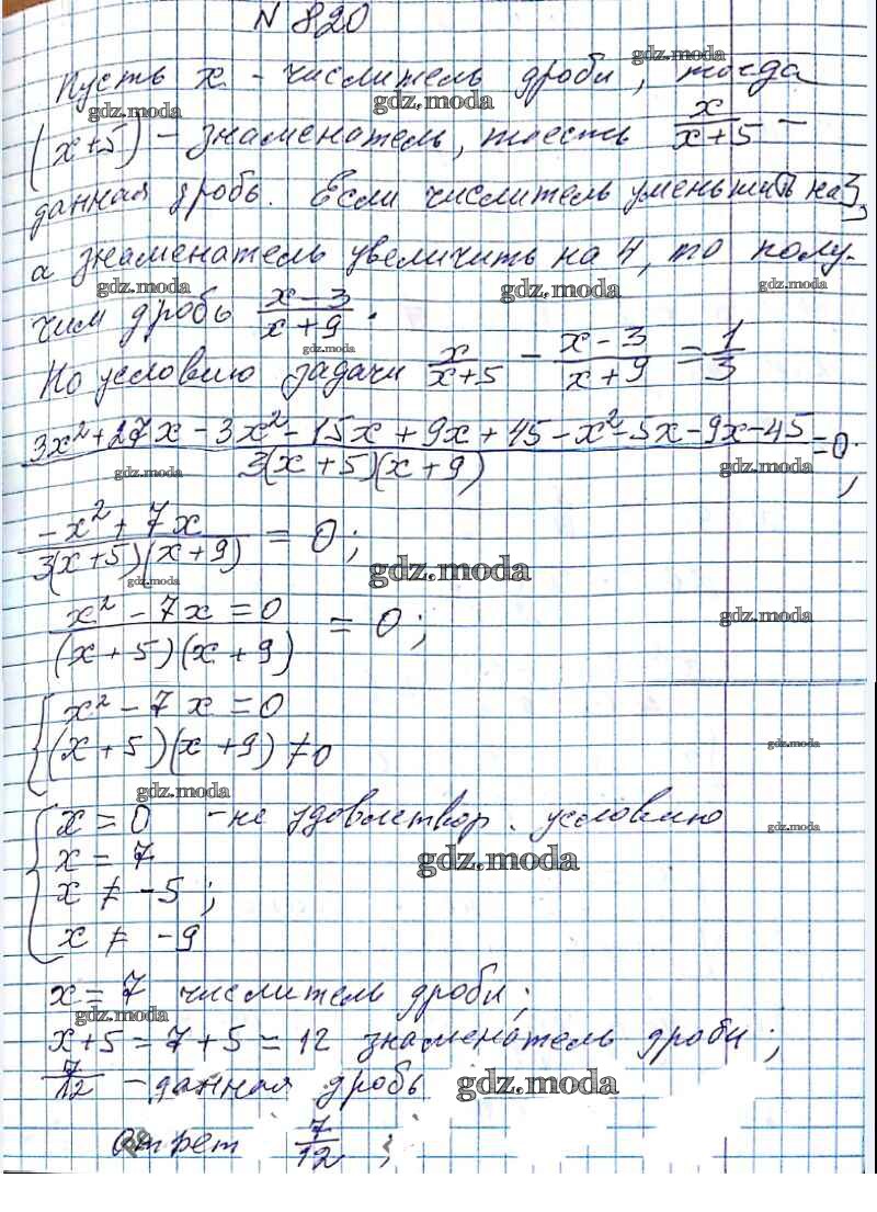 ОТВЕТ на задание № 820 Учебник по Алгебре 8 класс Мерзляк Алгоритм успеха