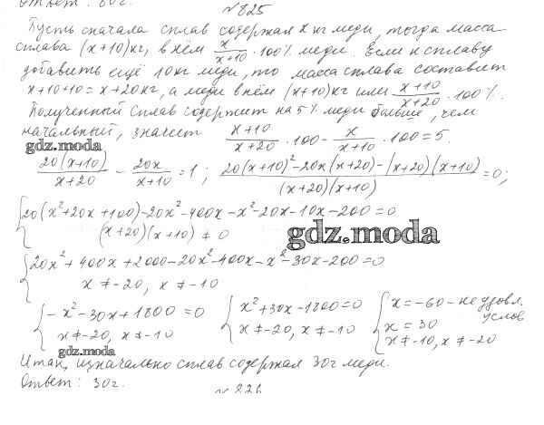 ОТВЕТ на задание № 825 Учебник по Алгебре 8 класс Мерзляк Алгоритм успеха