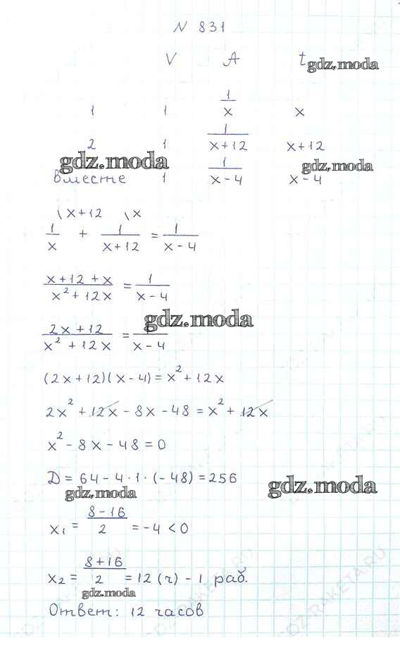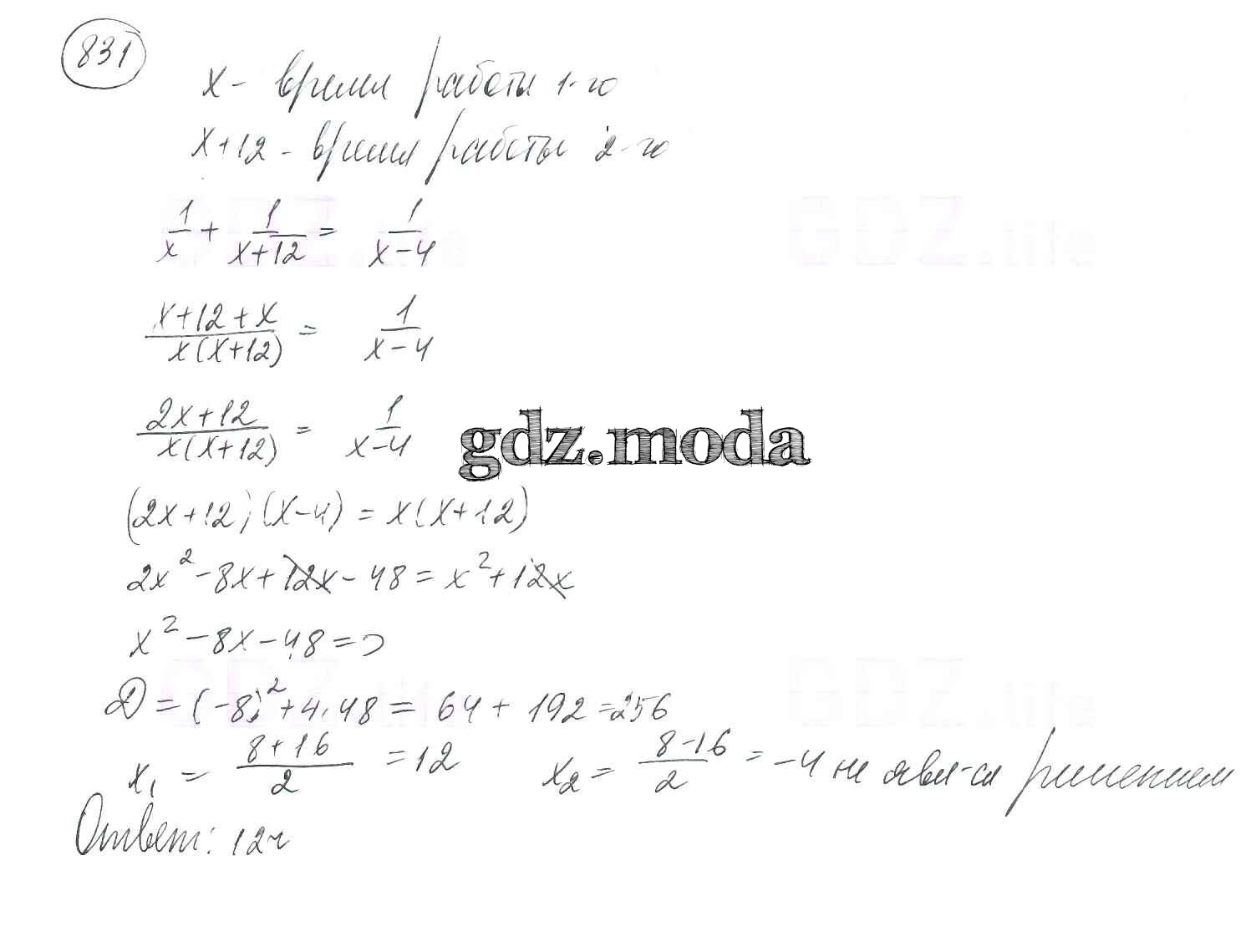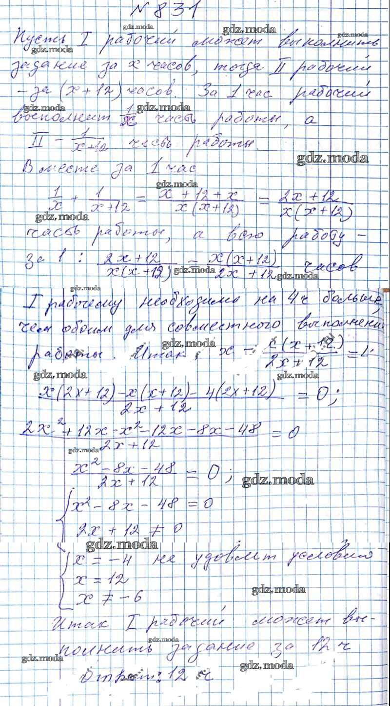 ОТВЕТ на задание № 831 Учебник по Алгебре 8 класс Мерзляк Алгоритм успеха