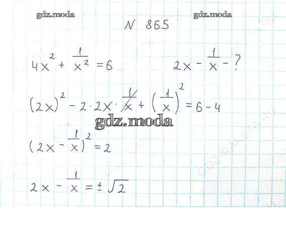 ОТВЕТ на задание № 865 Учебник по Алгебре 8 класс Мерзляк Алгоритм успеха