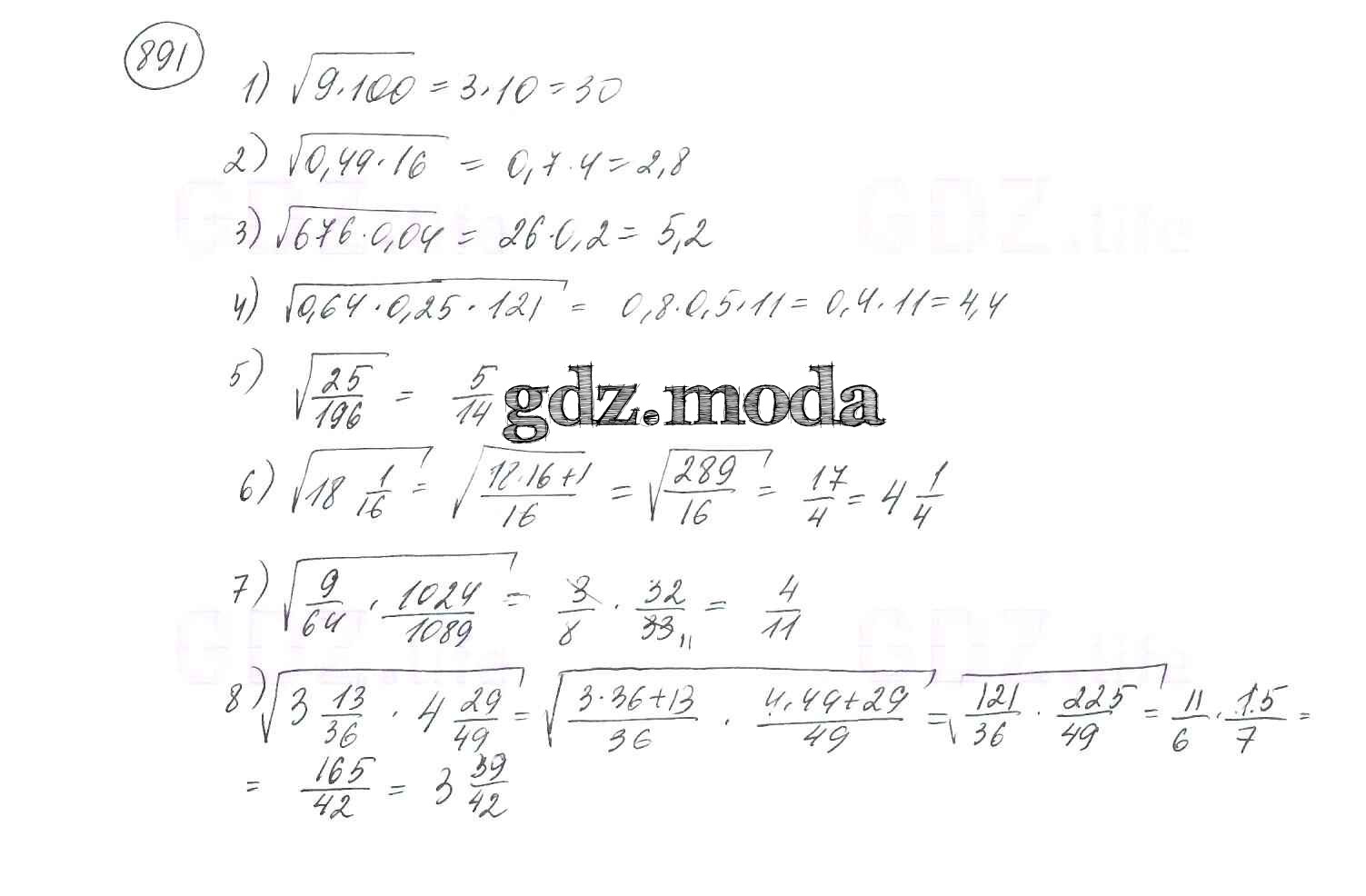 ОТВЕТ на задание № 891 Учебник по Алгебре 8 класс Мерзляк Алгоритм успеха