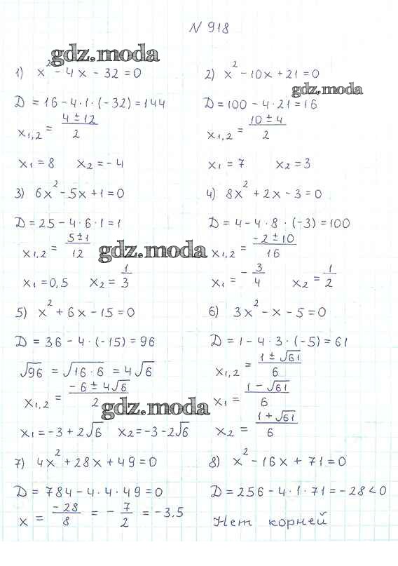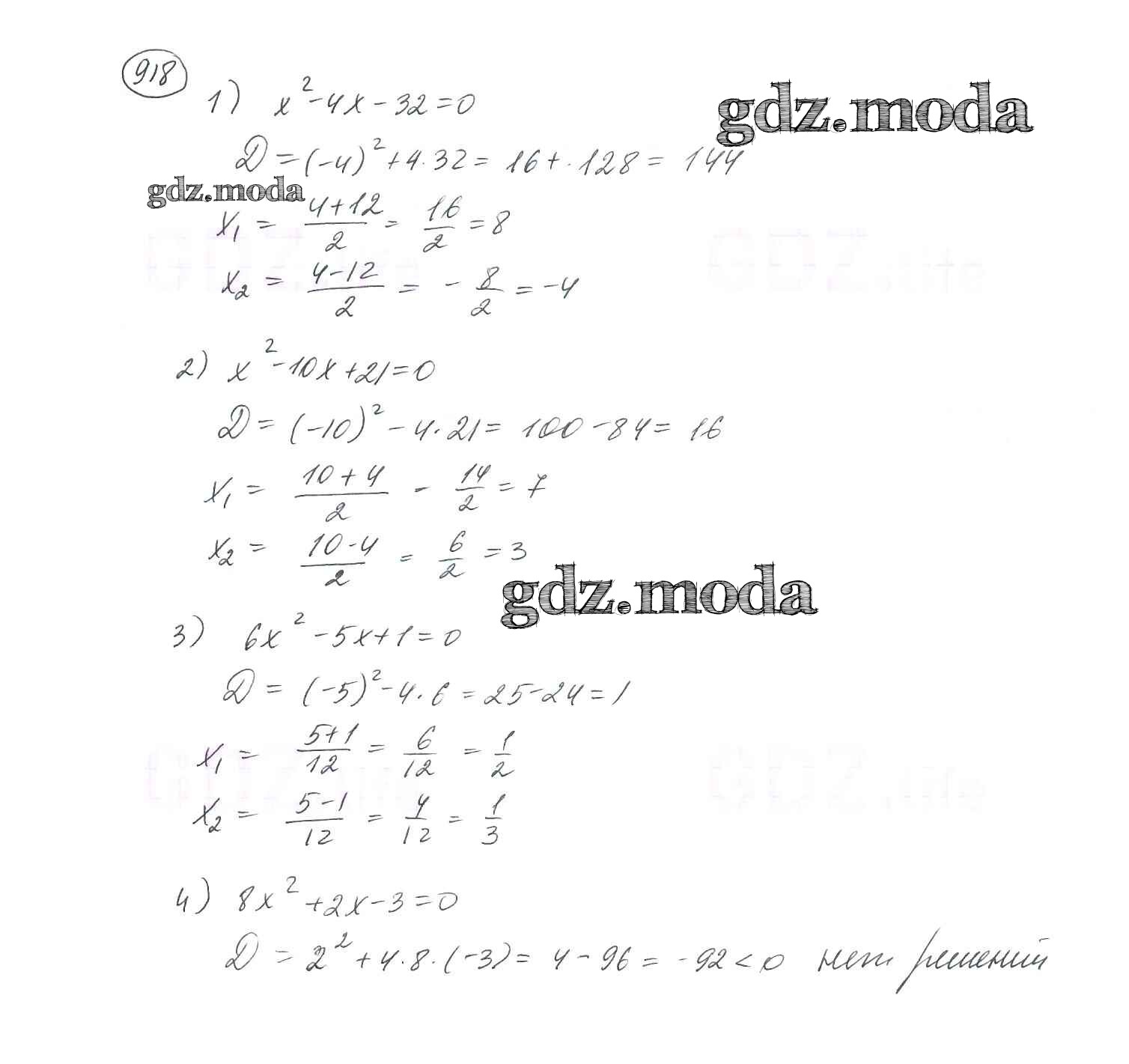 ОТВЕТ на задание № 918 Учебник по Алгебре 8 класс Мерзляк Алгоритм успеха