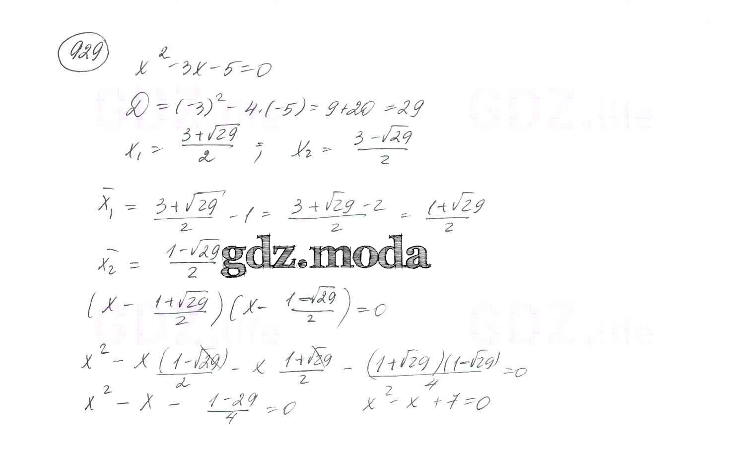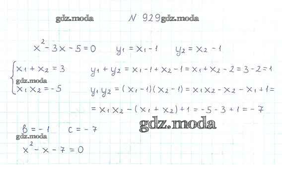 ОТВЕТ на задание № 929 Учебник по Алгебре 8 класс Мерзляк Алгоритм успеха