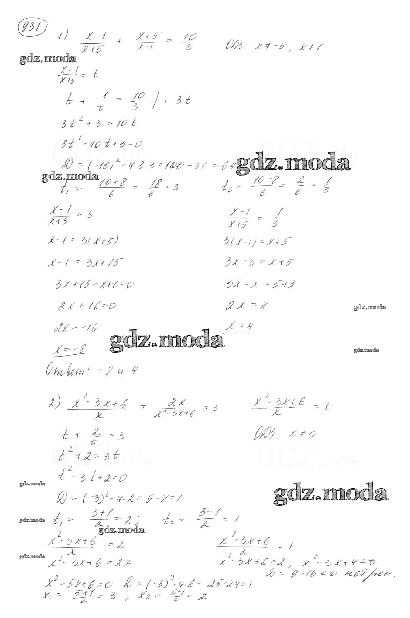 ОТВЕТ на задание № 931 Учебник по Алгебре 8 класс Мерзляк Алгоритм успеха