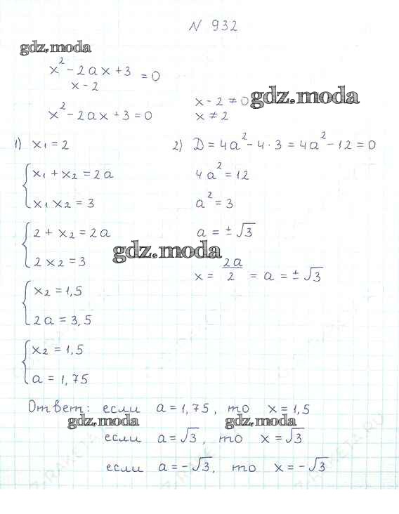ОТВЕТ на задание № 932 Учебник по Алгебре 8 класс Мерзляк Алгоритм успеха