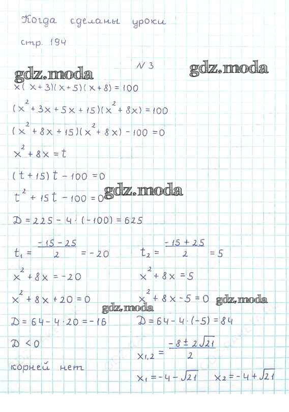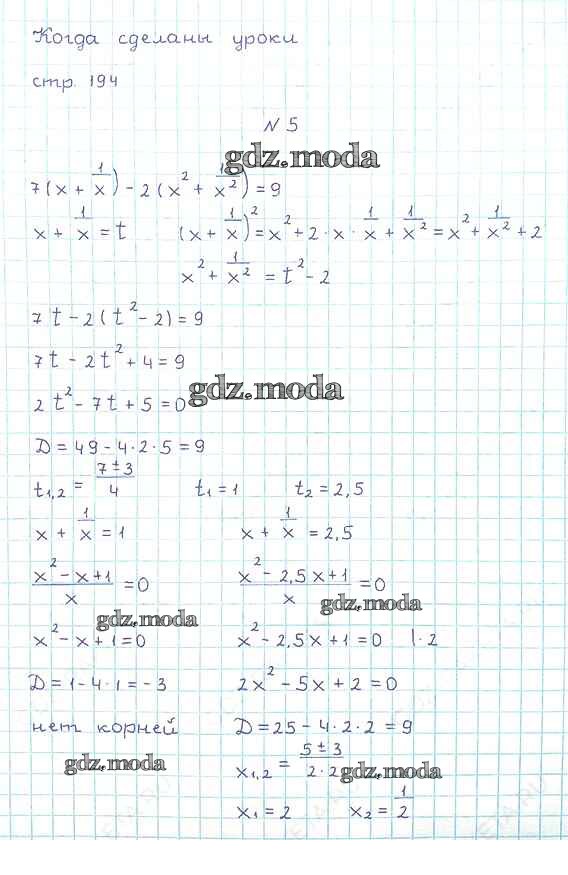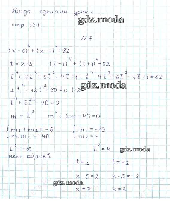 ОТВЕТ на задание № стр.194 Учебник по Алгебре 8 класс Мерзляк Алгоритм успеха