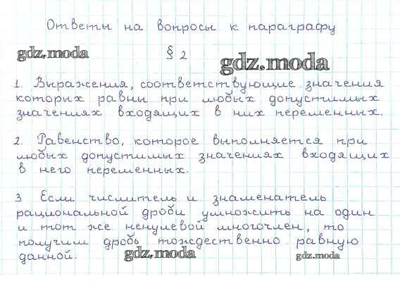ГДЗ решение к заданию № §2 Алгебра 8 класс Мерзляк А.Г. Вентана-граф 2016 ФГОС бесплатно на гдз.мода!