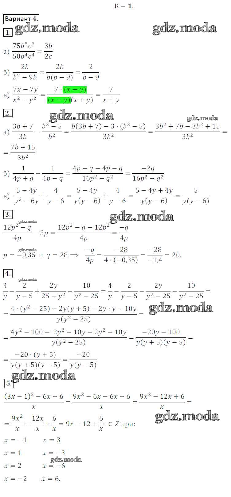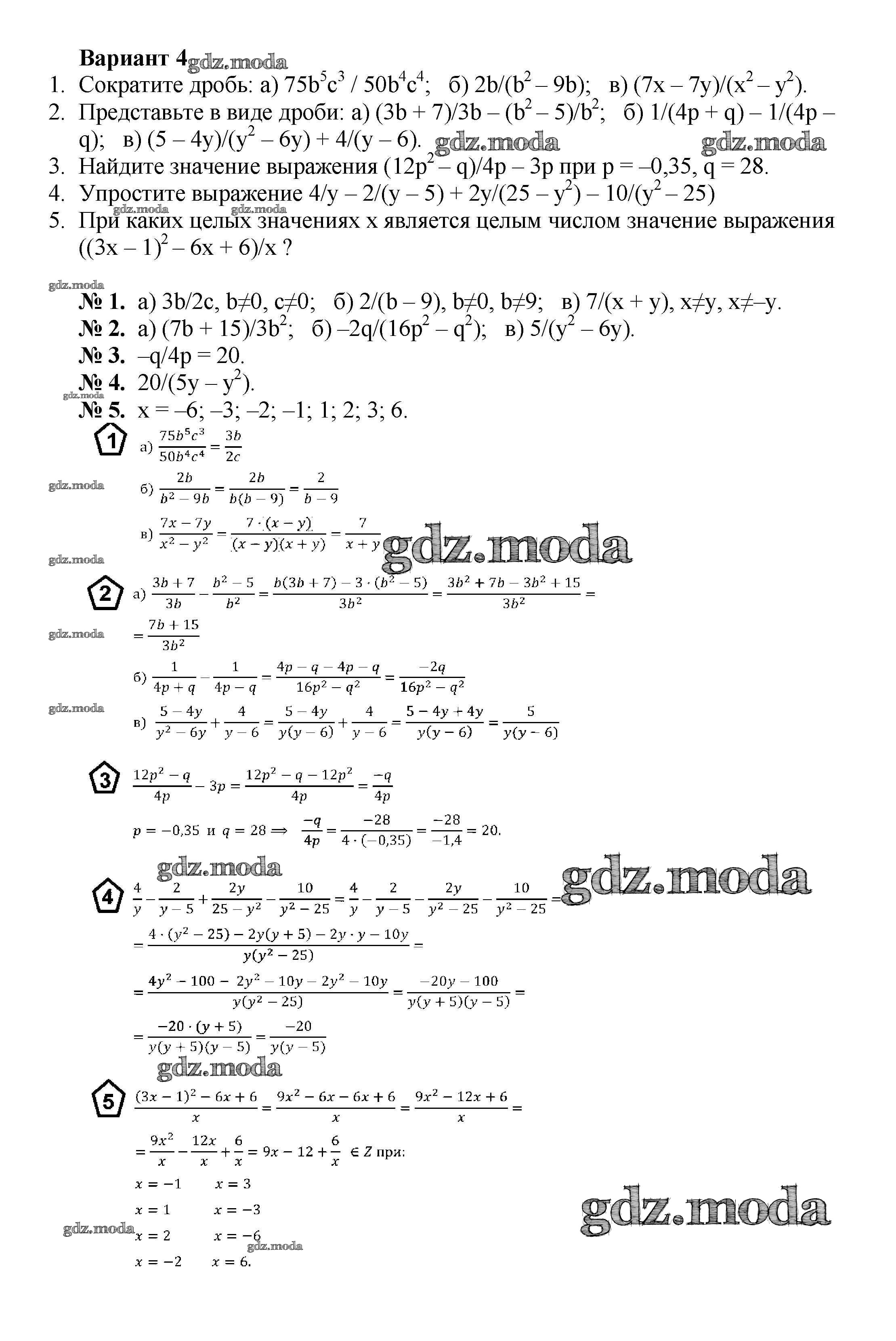 ГДЗ решение к заданию № вариант 4 Алгебра 8 класс Дидактические материалы Жохов В.И. Просвещение 2014 ФГОС бесплатно на гдз.мода!