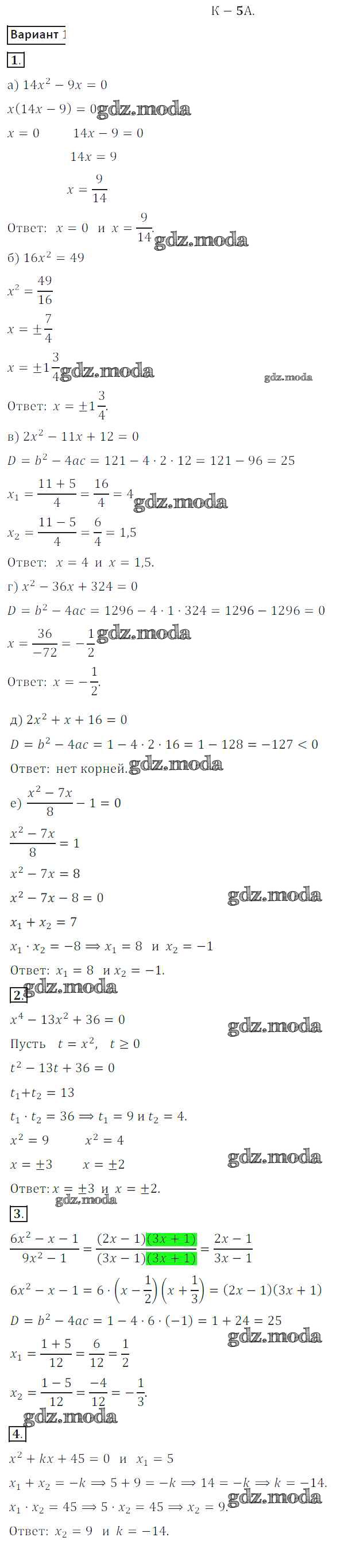 ГДЗ решение к заданию № вариант 1 Алгебра 8 класс Дидактические материалы Жохов В.И. Просвещение 2014 ФГОС бесплатно на гдз.мода!