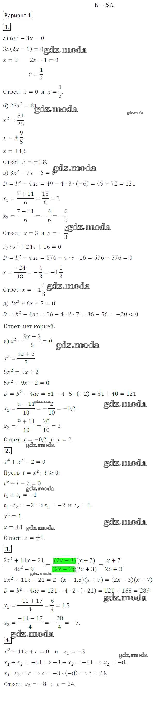ГДЗ решение к заданию № вариант 4 Алгебра 8 класс Дидактические материалы Жохов В.И. Просвещение 2014 ФГОС бесплатно на гдз.мода!