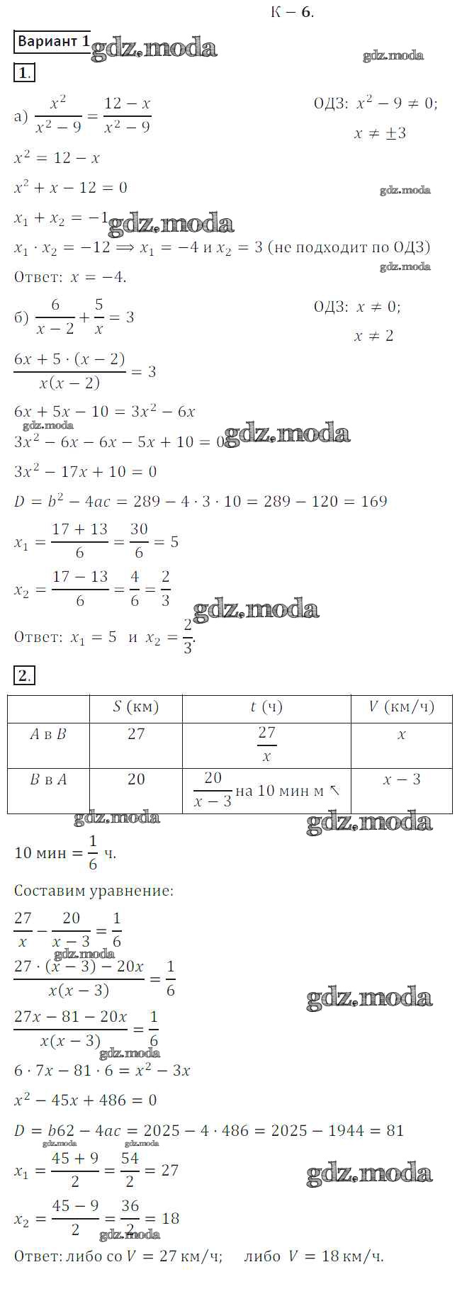 ГДЗ решение к заданию № вариант 1 Алгебра 8 класс Дидактические материалы Жохов В.И. Просвещение 2014 ФГОС бесплатно на гдз.мода!