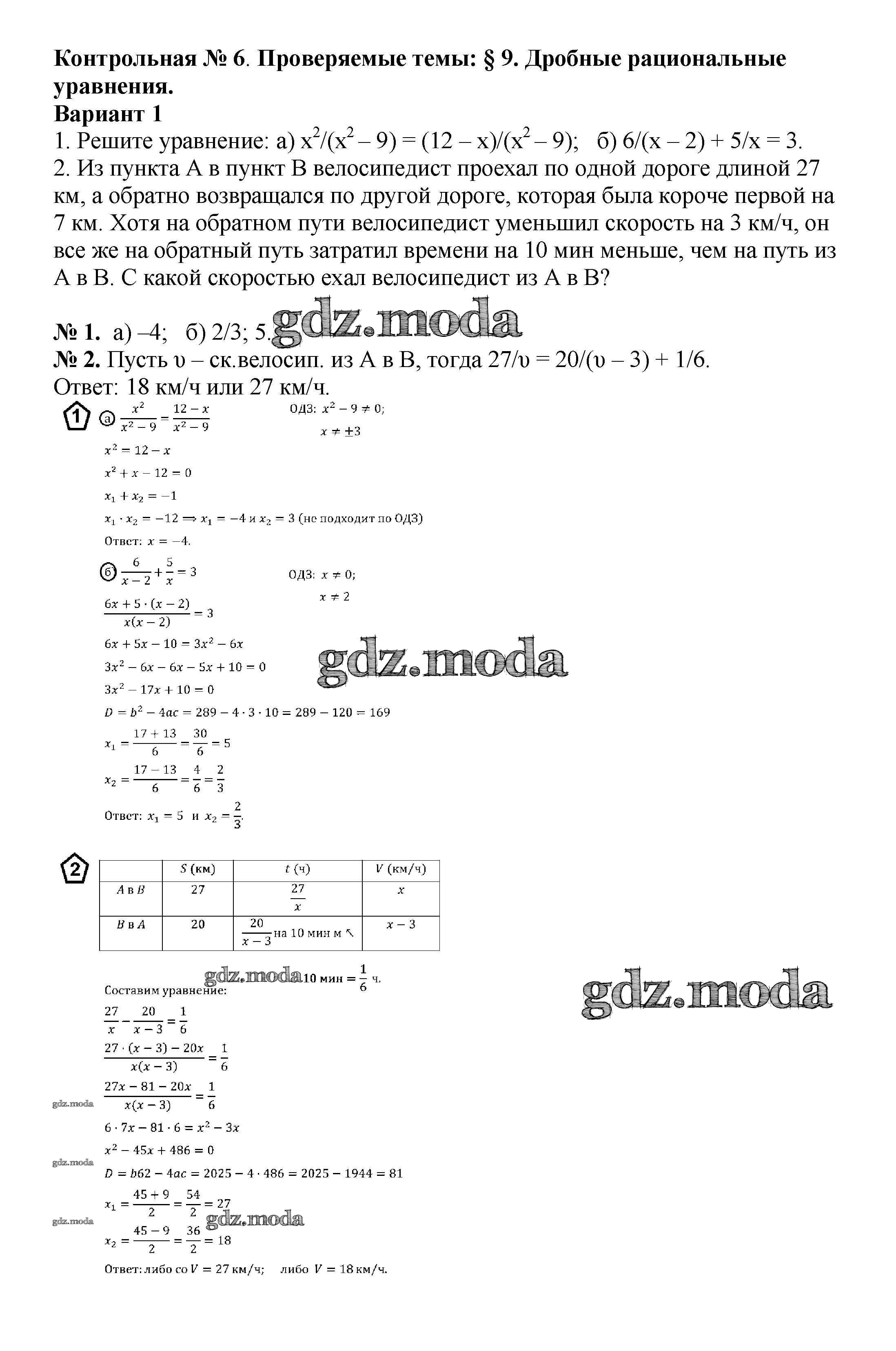 ОТВЕТ на задание № вариант 1 Дидактические материалы по Алгебре 8 класс Жохов