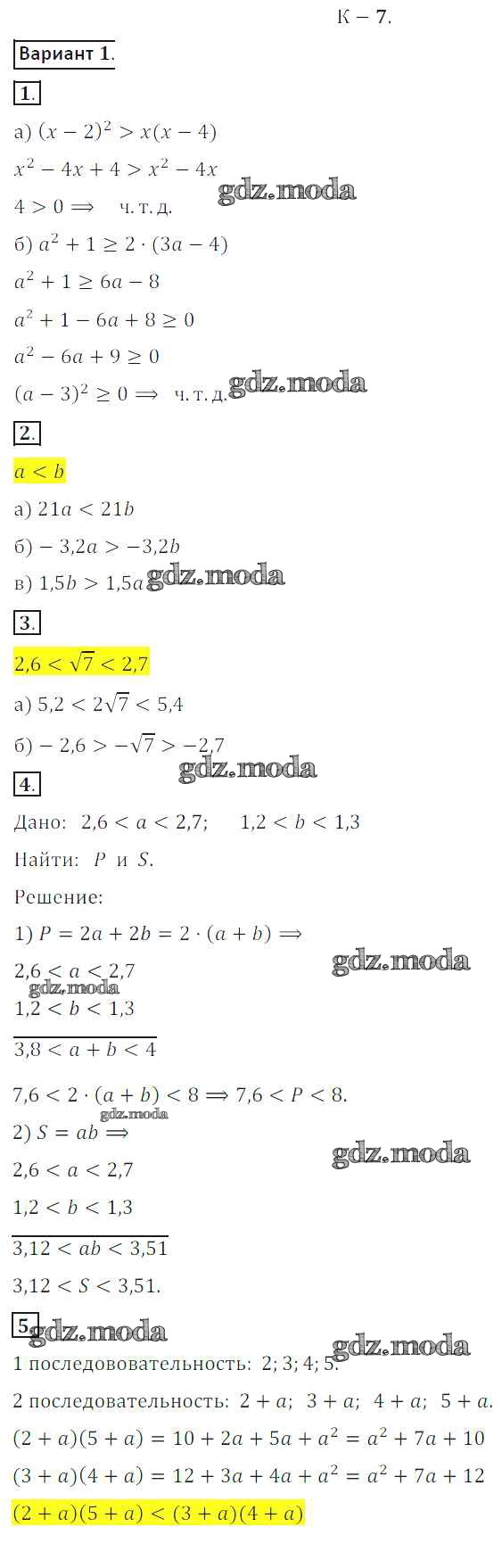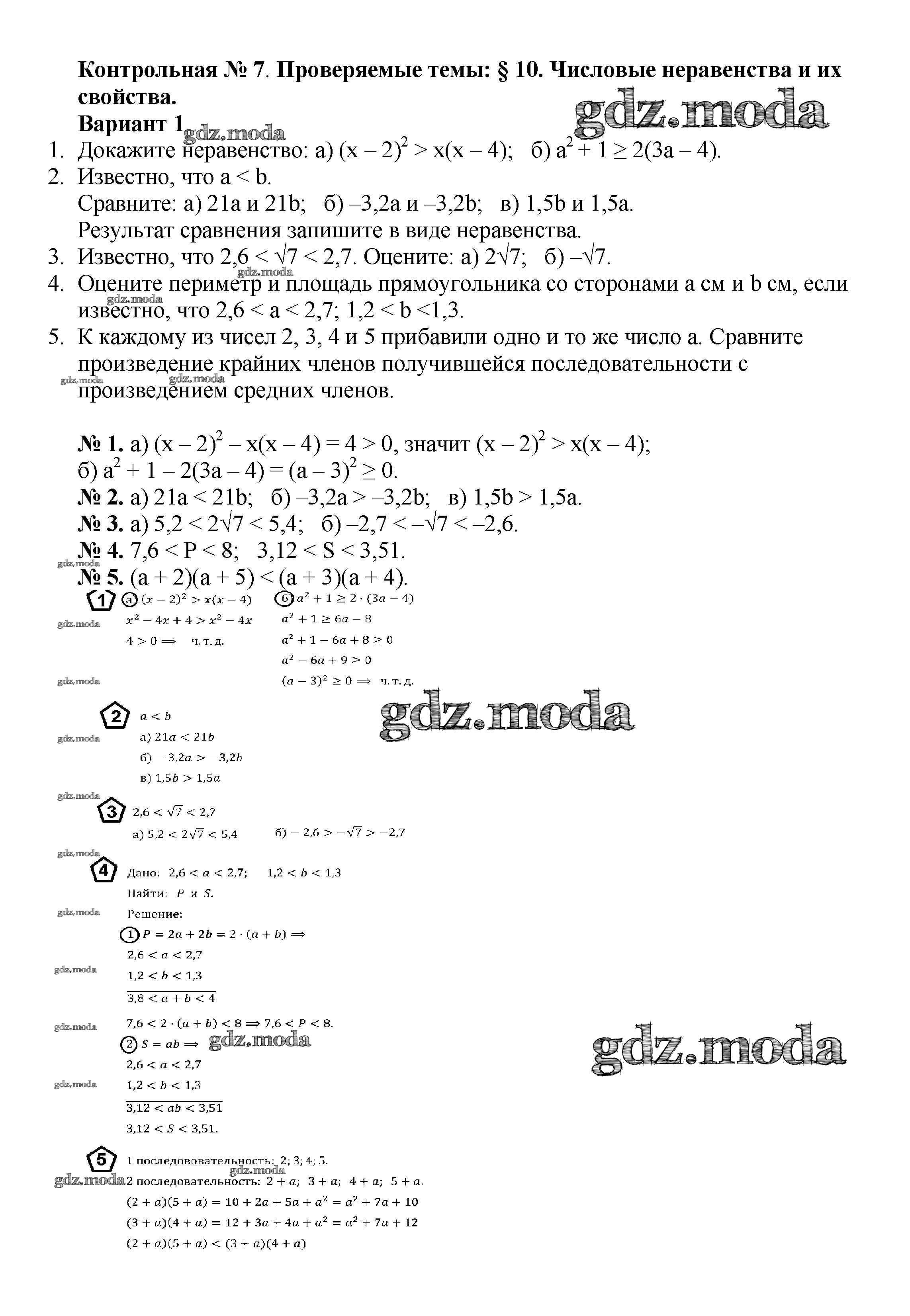 ОТВЕТ на задание № вариант 1 Дидактические материалы по Алгебре 8 класс Жохов