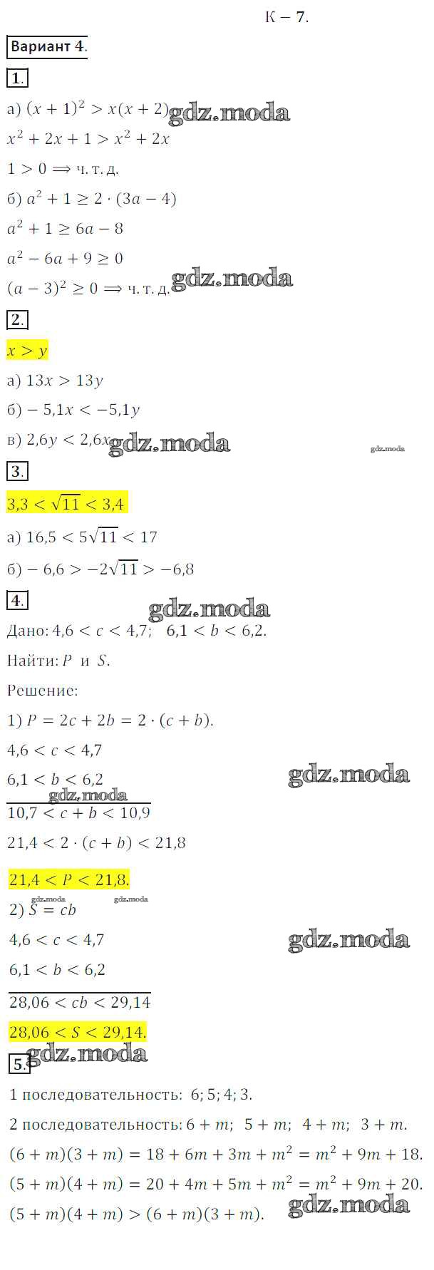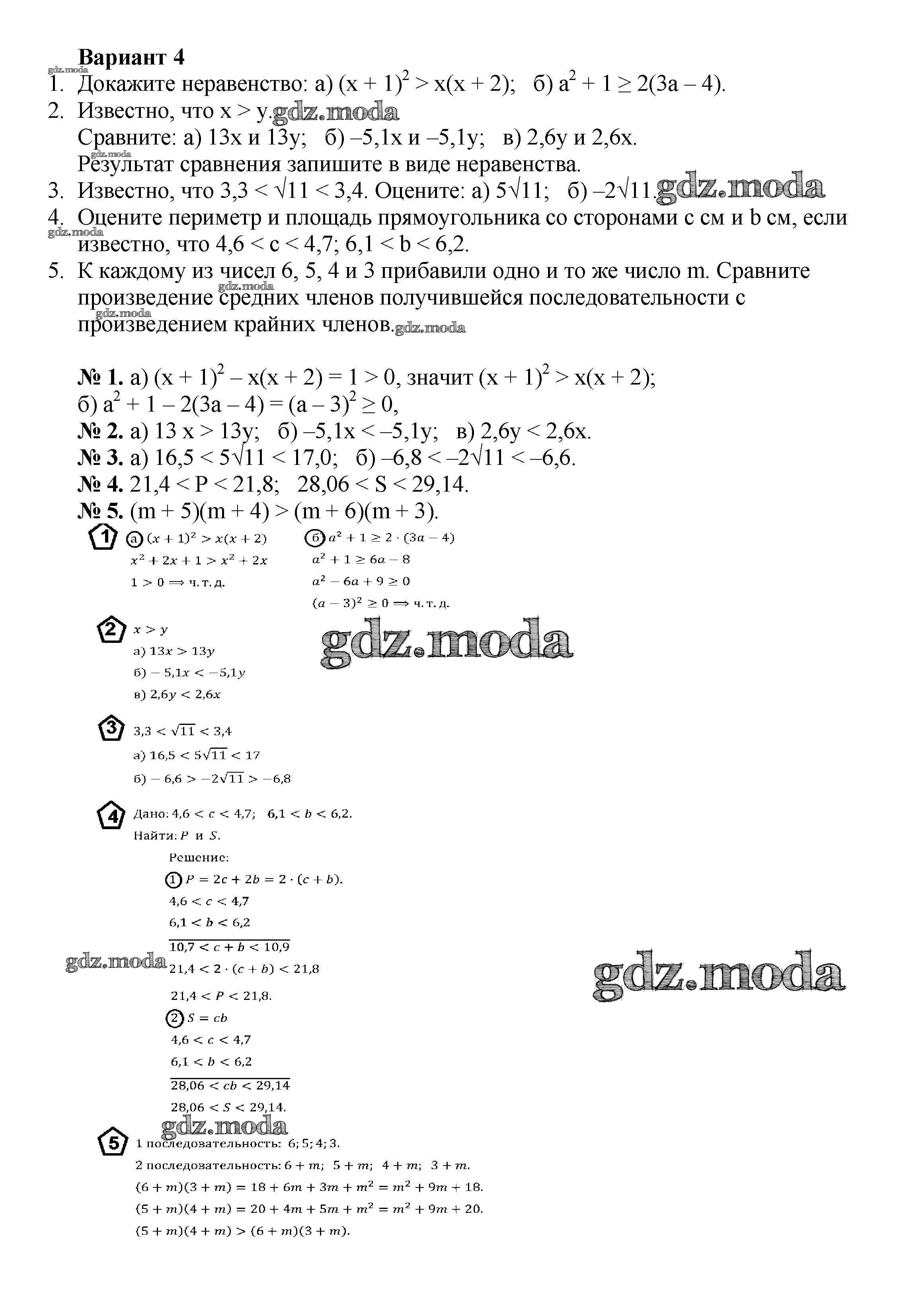 ГДЗ решение к заданию № вариант 4 Алгебра 8 класс Дидактические материалы Жохов В.И. Просвещение 2014 ФГОС бесплатно на гдз.мода!