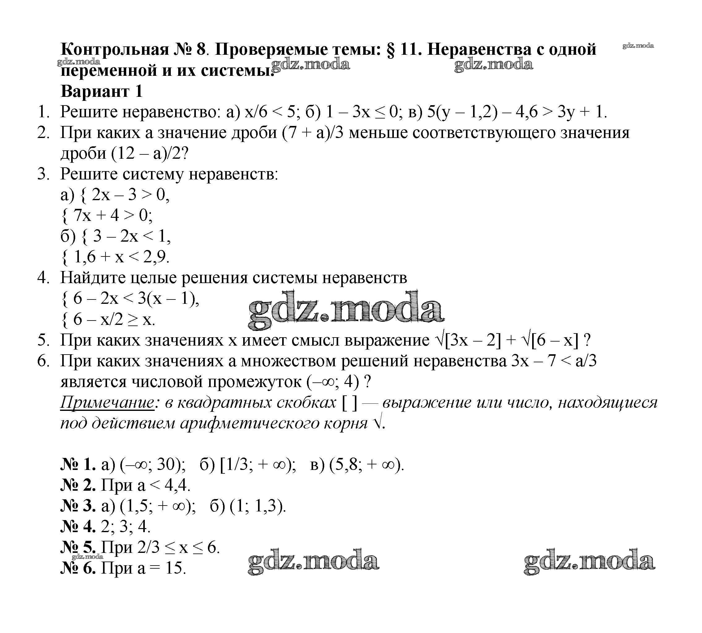 ОТВЕТ на задание № вариант 1 Дидактические материалы по Алгебре 8 класс Жохов