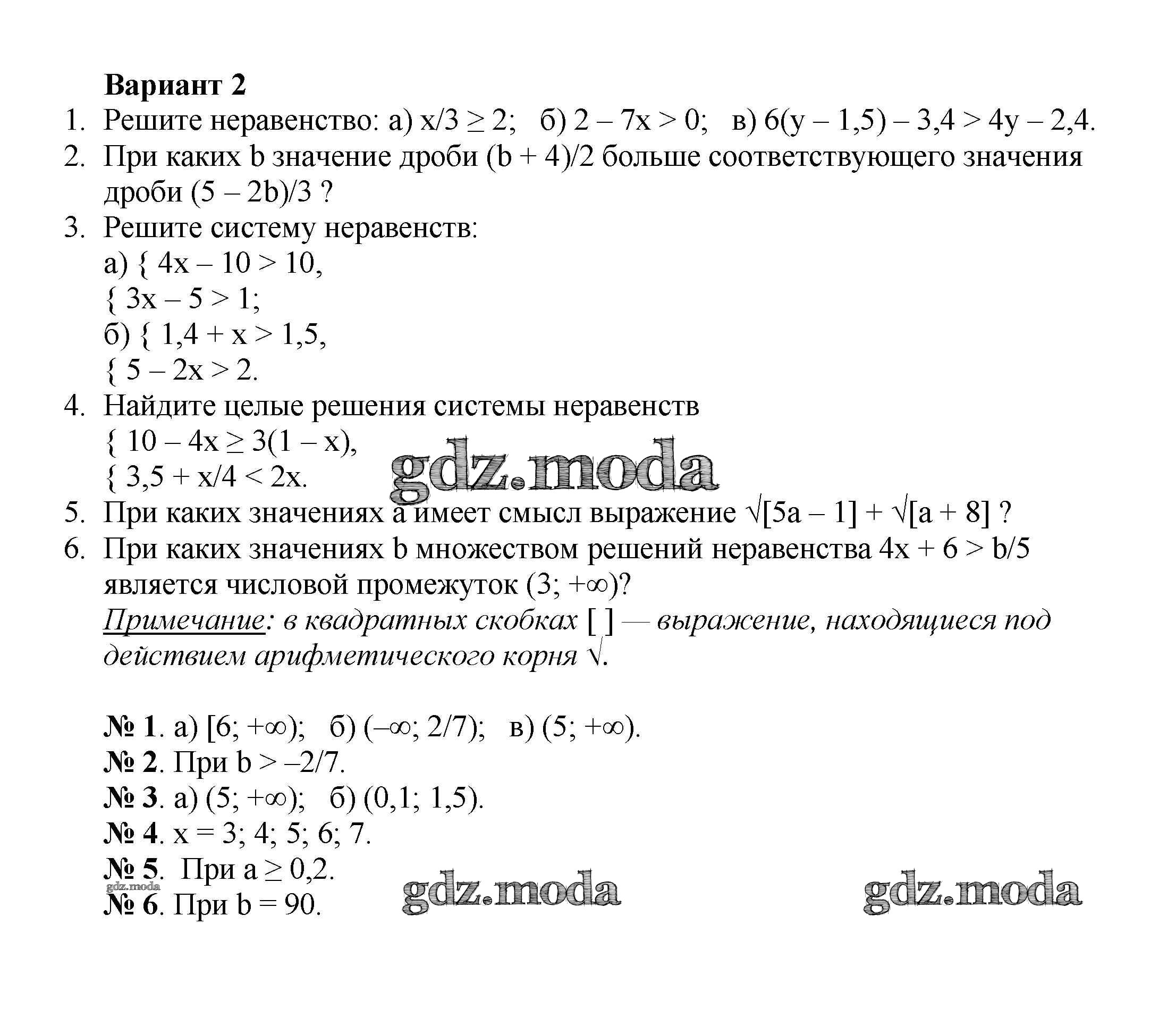 ОТВЕТ на задание № вариант 2 Дидактические материалы по Алгебре 8 класс Жохов