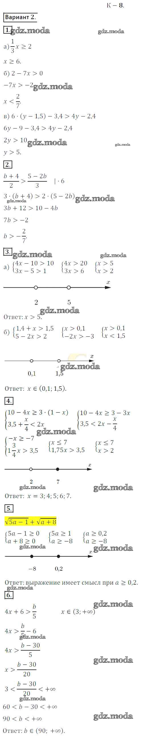 ГДЗ решение к заданию № вариант 2 Алгебра 8 класс Дидактические материалы Жохов В.И. Просвещение 2014 ФГОС бесплатно на гдз.мода!