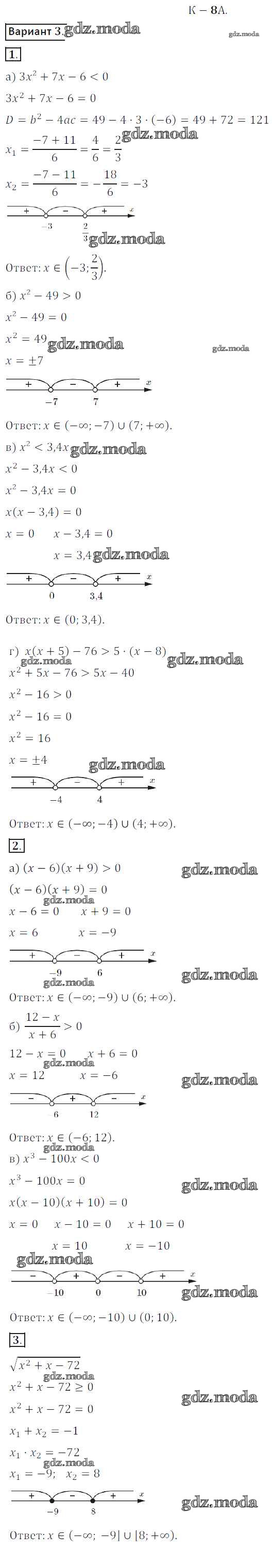 ОТВЕТ на задание № вариант 3 Дидактические материалы по Алгебре 8 класс Жохов