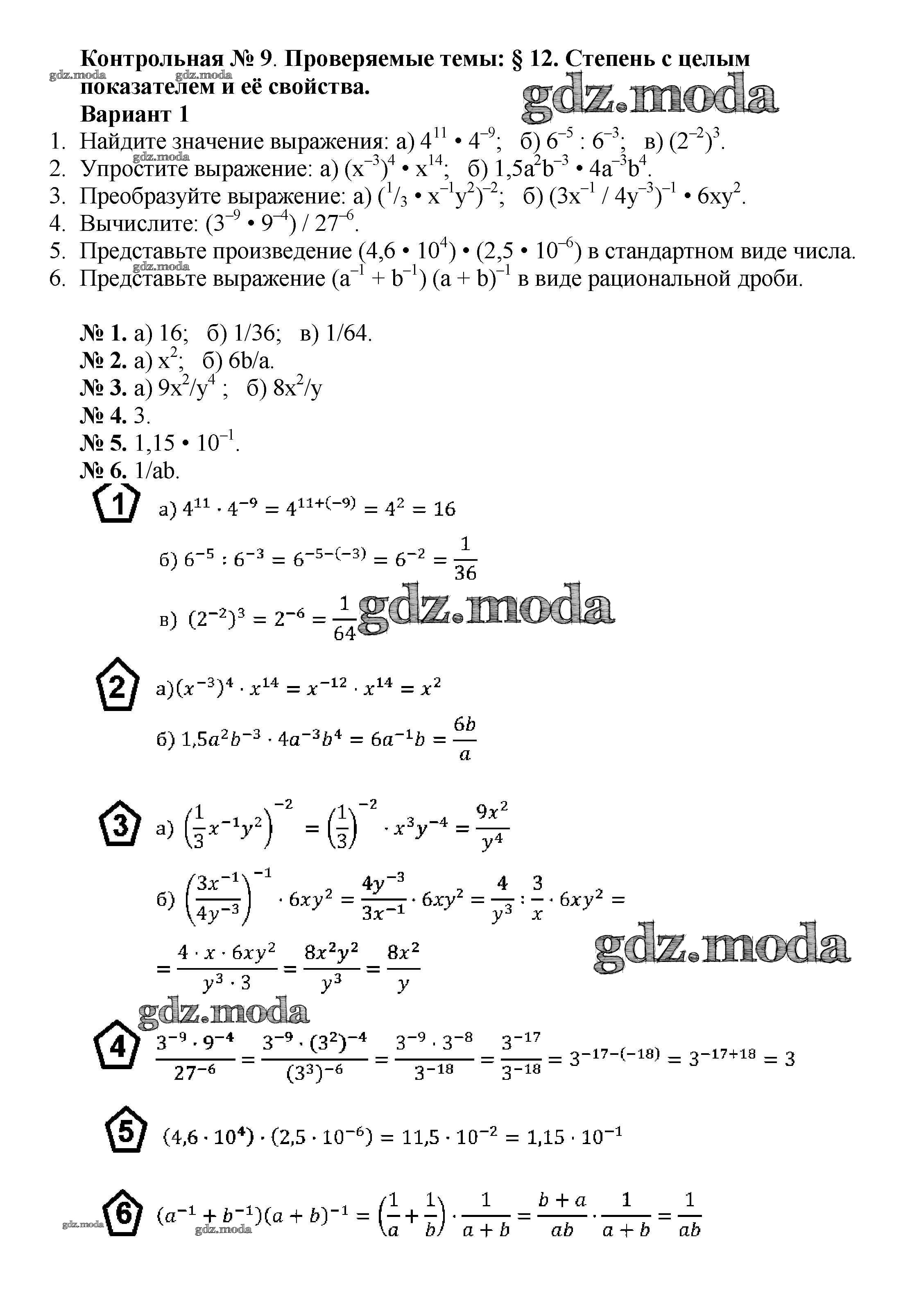 ОТВЕТ на задание № вариант 1 Дидактические материалы по Алгебре 8 класс Жохов