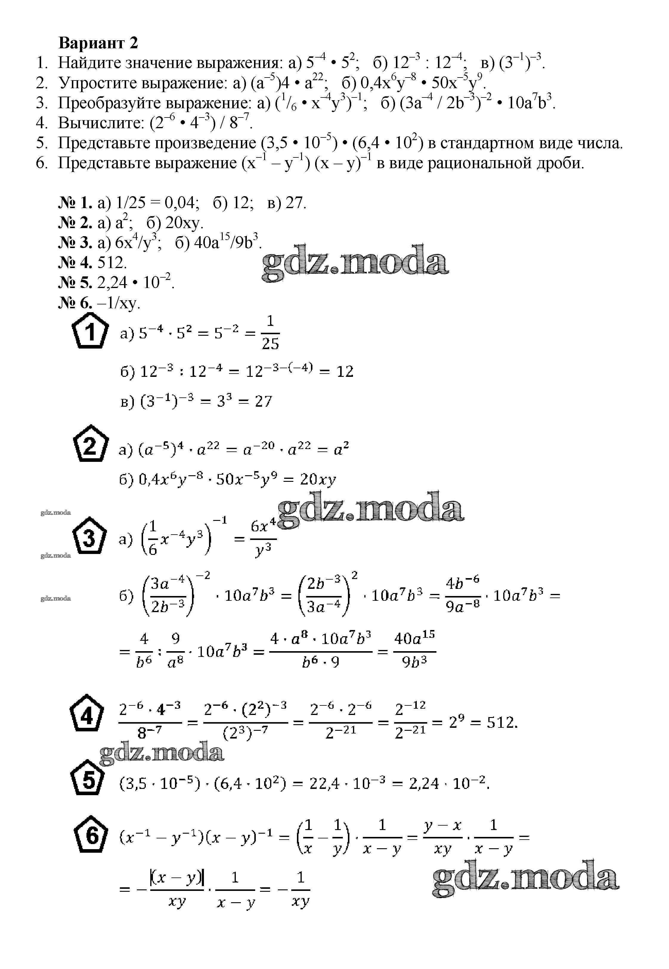 ГДЗ решение к заданию № вариант 2 Алгебра 8 класс Дидактические материалы Жохов В.И. Просвещение 2014 ФГОС бесплатно на гдз.мода!