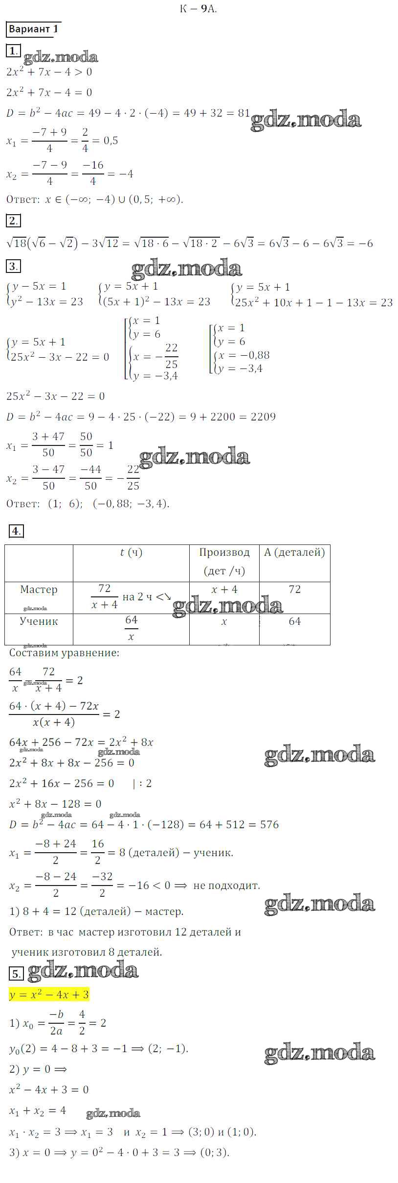 ОТВЕТ на задание № вариант 1 Дидактические материалы по Алгебре 8 класс Жохов