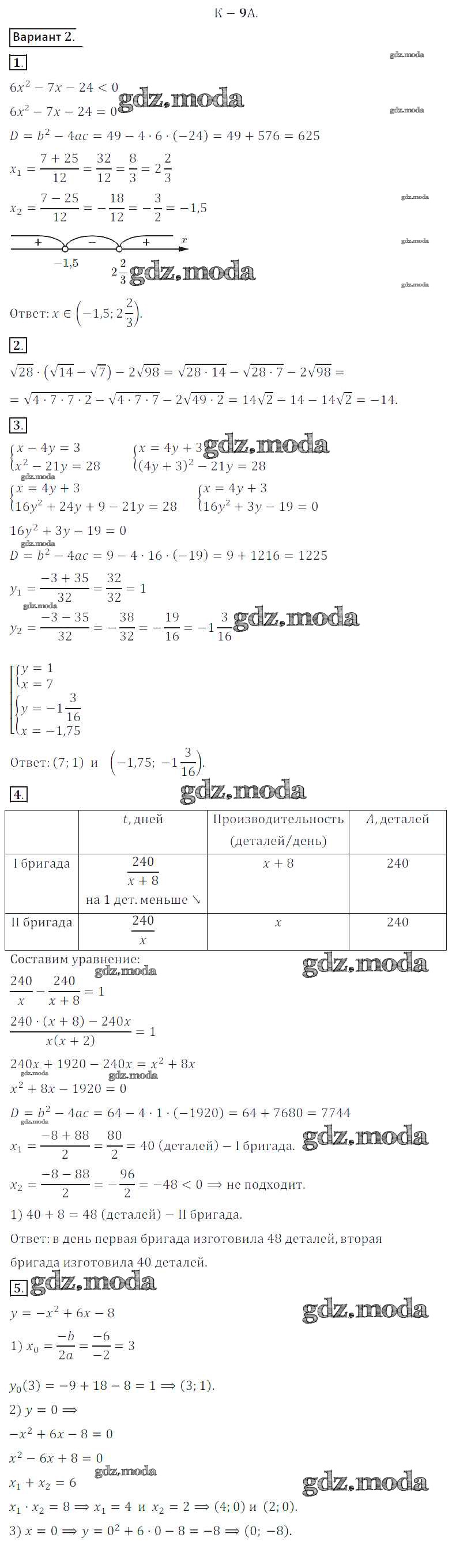 ГДЗ решение к заданию № вариант 2 Алгебра 8 класс Дидактические материалы Жохов В.И. Просвещение 2014 ФГОС бесплатно на гдз.мода!