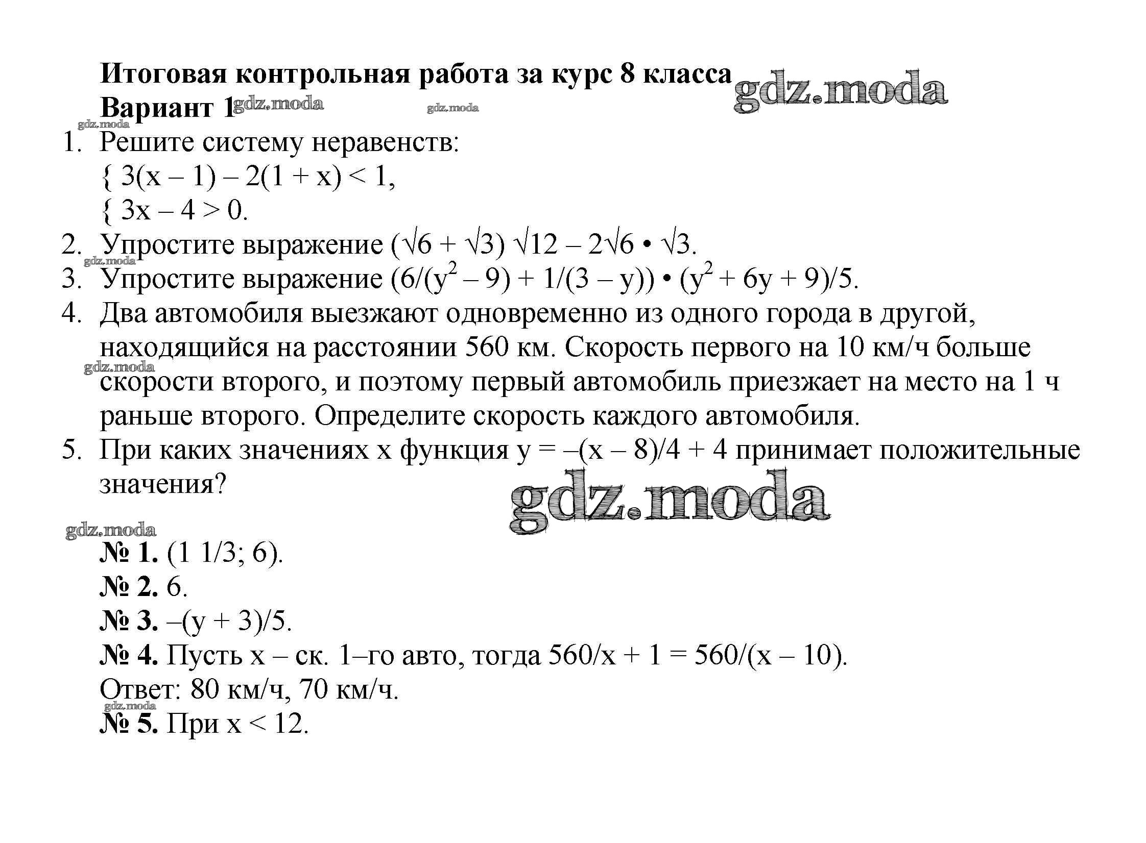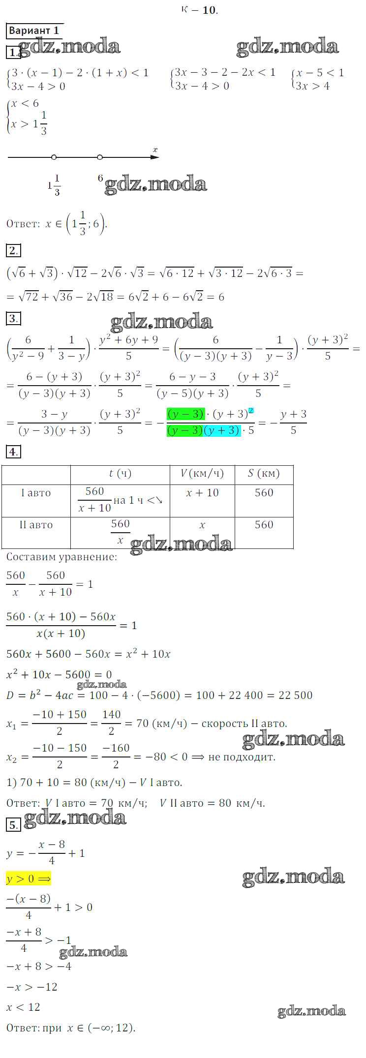 ОТВЕТ на задание № вариант 1 Дидактические материалы по Алгебре 8 класс Жохов