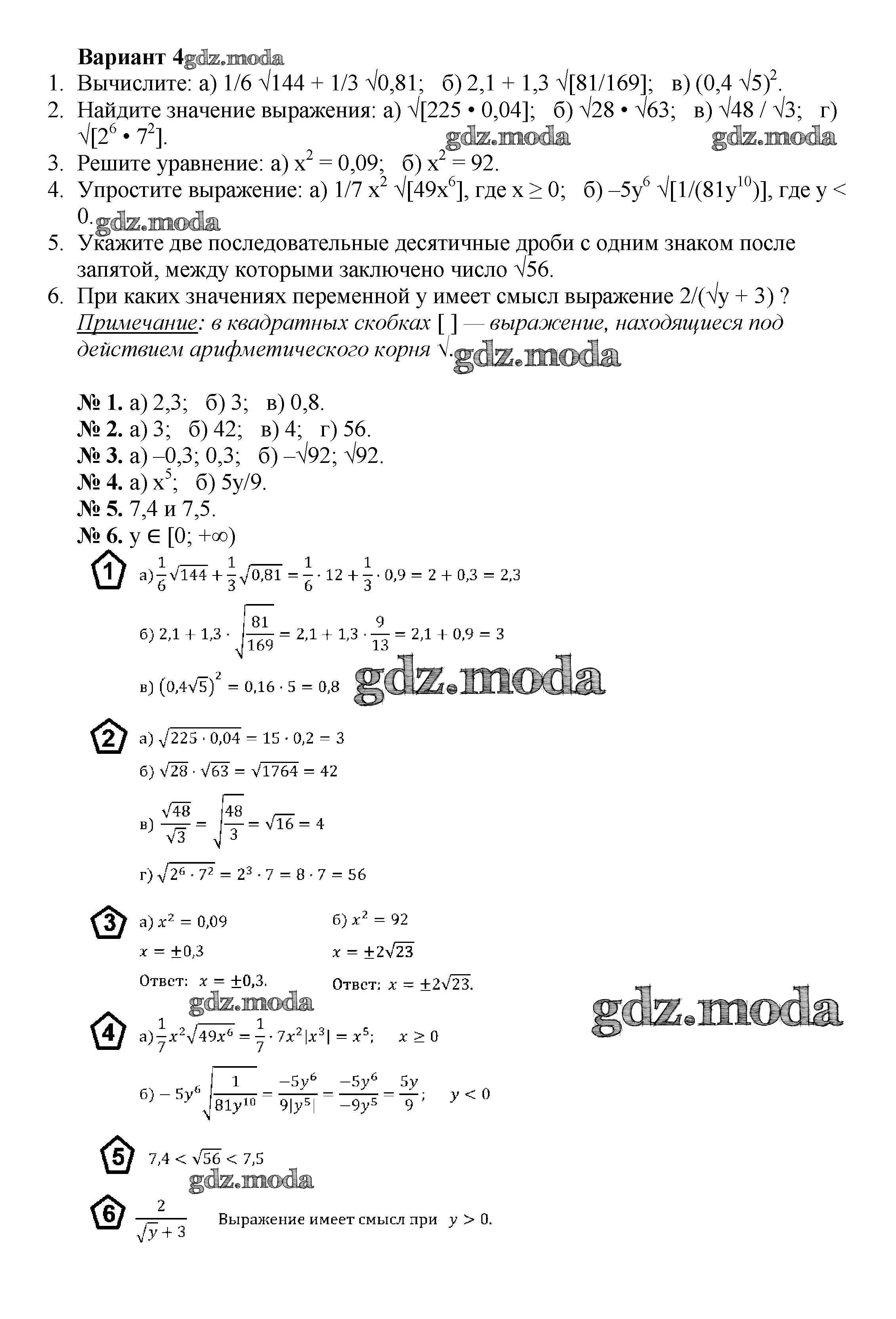 ГДЗ решение к заданию № вариант 4 Алгебра 8 класс Дидактические материалы Жохов В.И. Просвещение 2014 ФГОС бесплатно на гдз.мода!