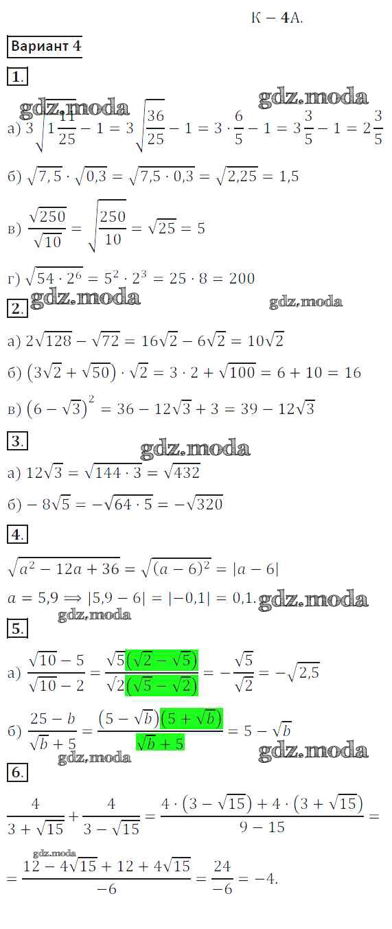 ГДЗ решение к заданию № вариант 4 Алгебра 8 класс Дидактические материалы Жохов В.И. Просвещение 2014 ФГОС бесплатно на гдз.мода!