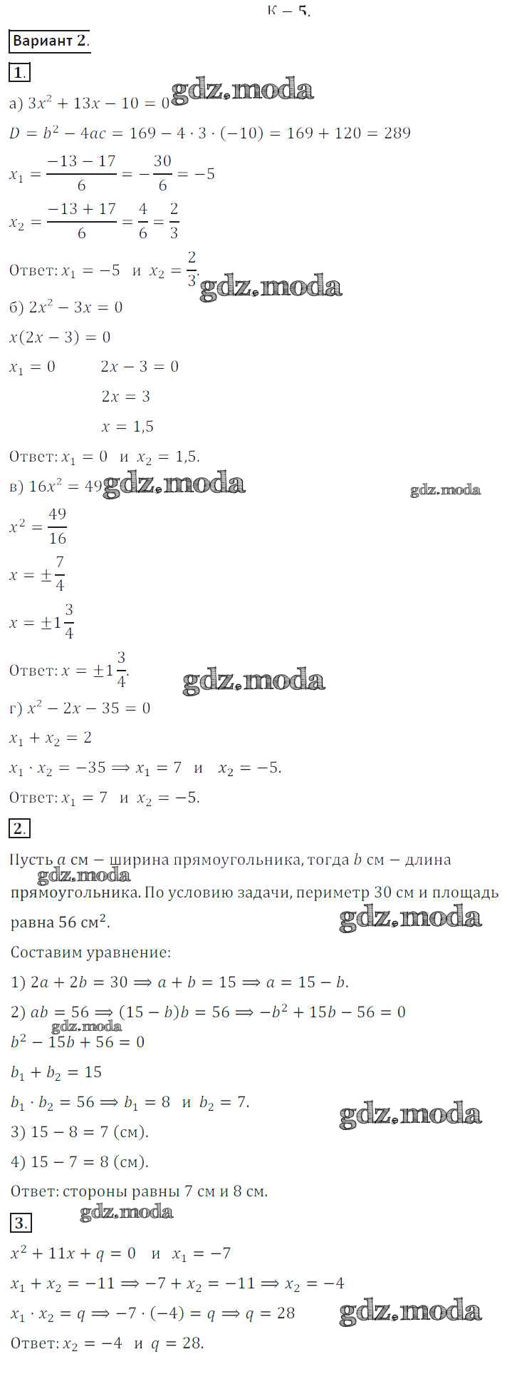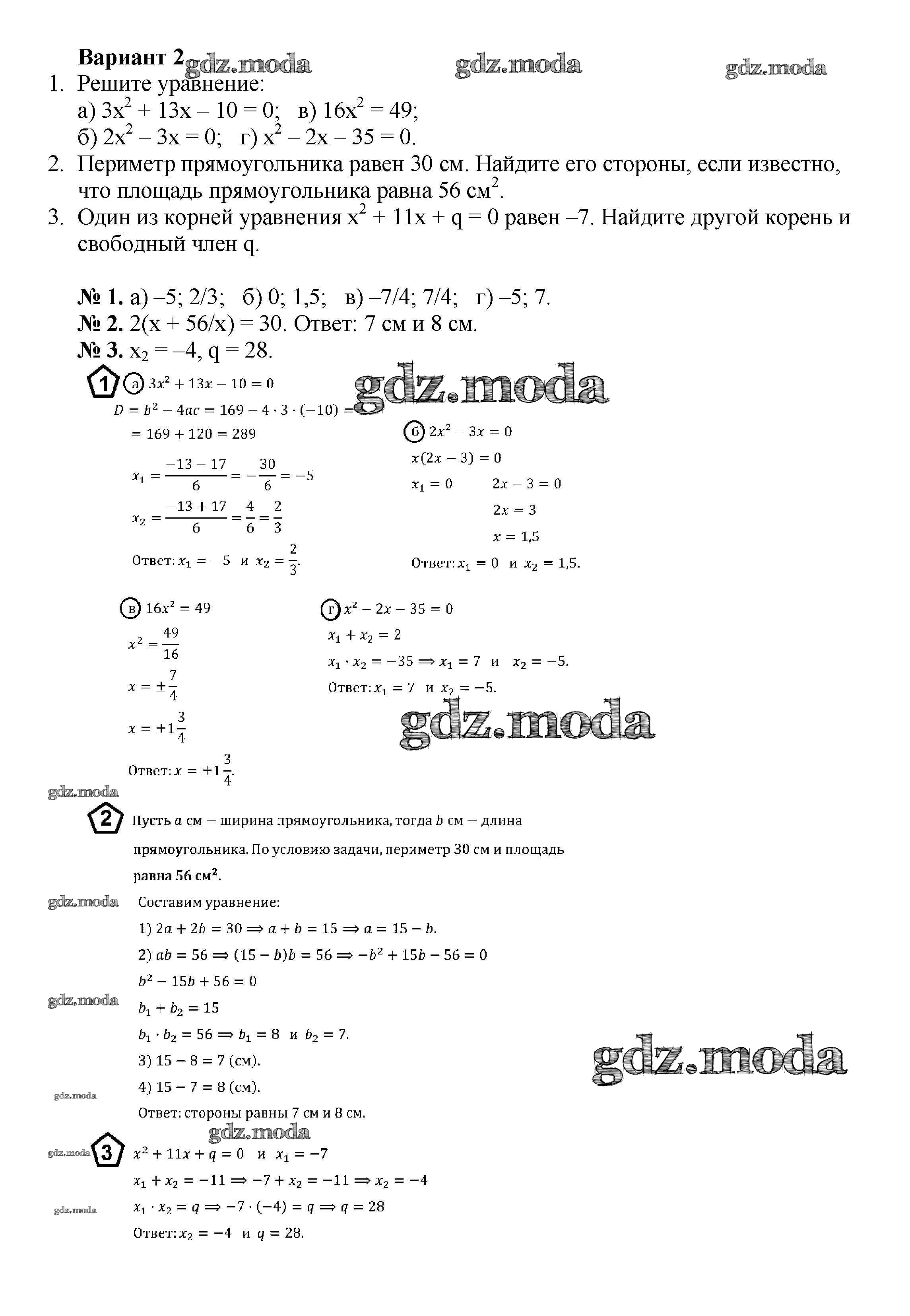 ГДЗ решение к заданию № вариант 2 Алгебра 8 класс Дидактические материалы Жохов В.И. Просвещение 2014 ФГОС бесплатно на гдз.мода!