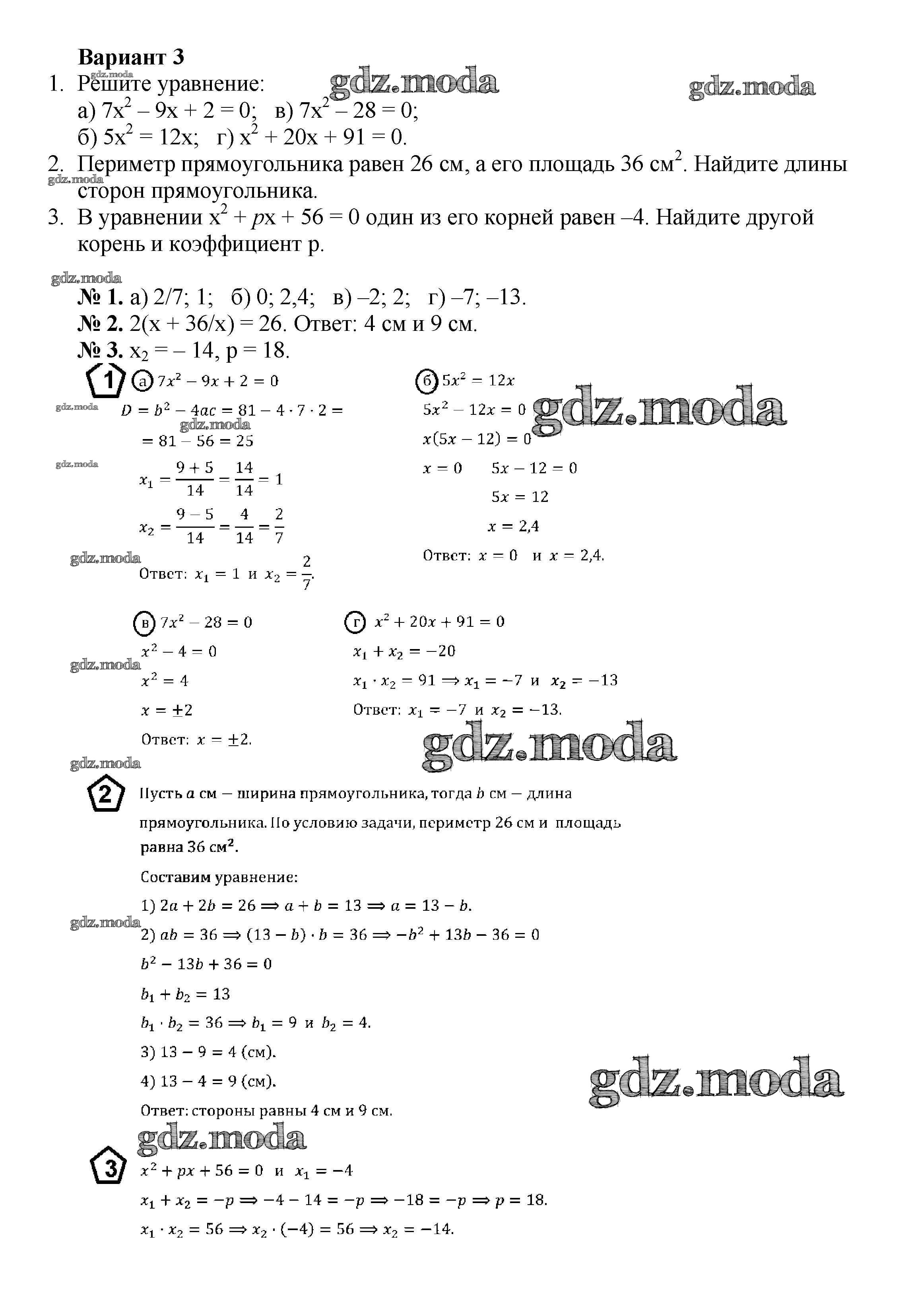 ГДЗ решение к заданию № вариант 3 Алгебра 8 класс Дидактические материалы Жохов В.И. Просвещение 2014 ФГОС бесплатно на гдз.мода!