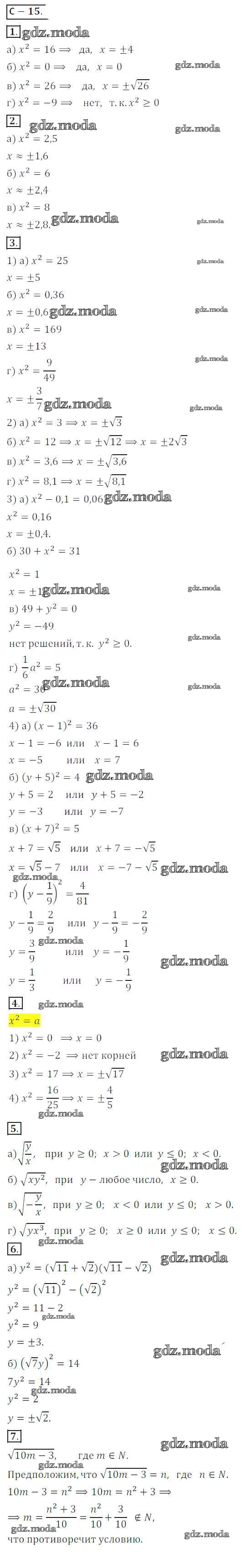 ГДЗ решение к заданию № СР №15 Алгебра 8 класс Дидактические материалы Жохов В.И. Просвещение 2014 ФГОС бесплатно на гдз.мода!