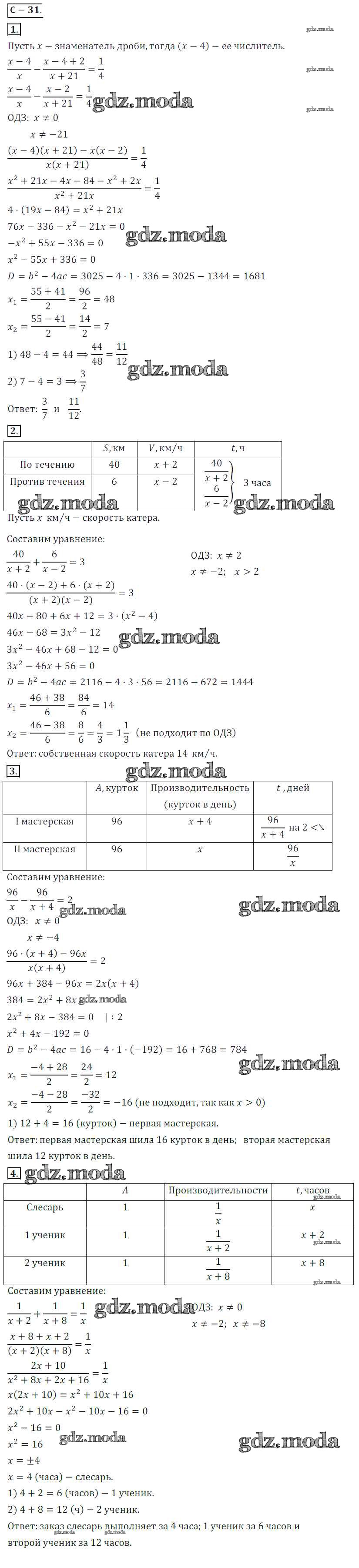 ОТВЕТ на задание № СР №31 Дидактические материалы по Алгебре 8 класс Жохов