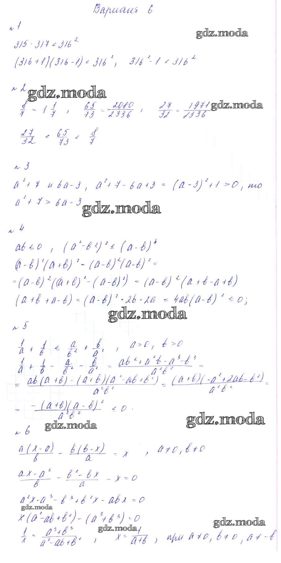 ГДЗ решение к заданию № Вариант-6 Алгебра 8 класс Дидактические материалы Зив Б.Г. Виктория плюс 2012 ФГОС бесплатно на гдз.мода!