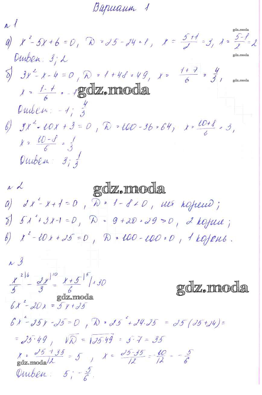 ГДЗ решение к заданию № Вариант-1 Алгебра 8 класс Дидактические материалы Зив Б.Г. Виктория плюс 2012 ФГОС бесплатно на гдз.мода!