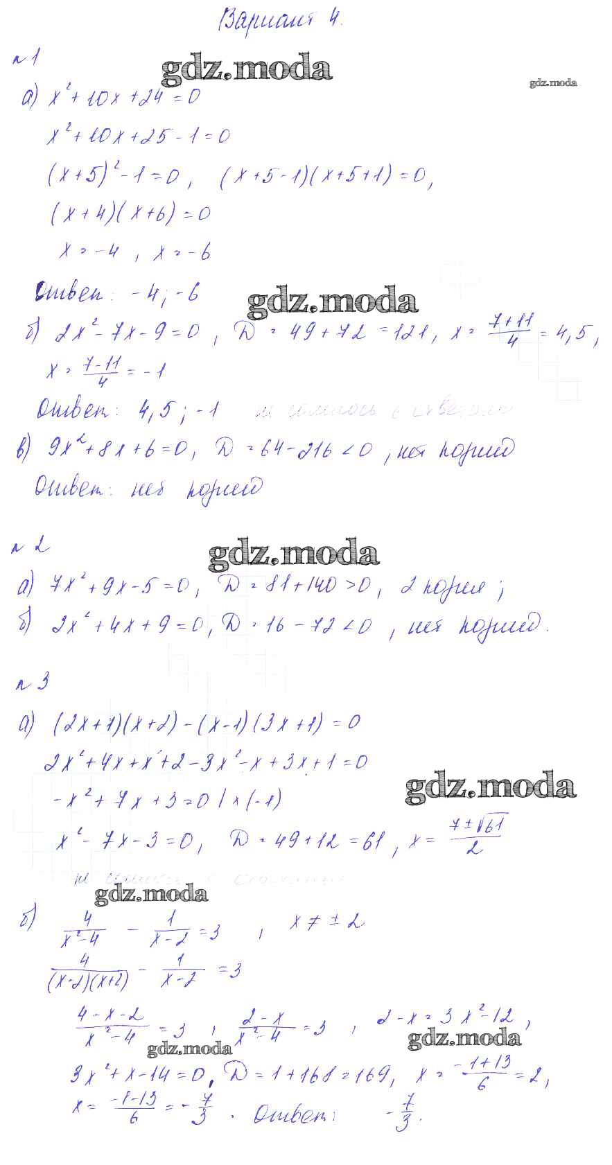 ГДЗ решение к заданию № Вариант-4 Алгебра 8 класс Дидактические материалы Зив Б.Г. Виктория плюс 2012 ФГОС бесплатно на гдз.мода!