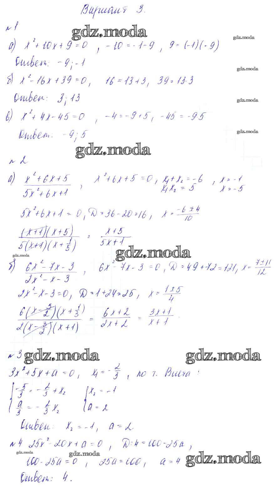 ГДЗ решение к заданию № Вариант-3 Алгебра 8 класс Дидактические материалы Зив Б.Г. Виктория плюс 2012 ФГОС бесплатно на гдз.мода!